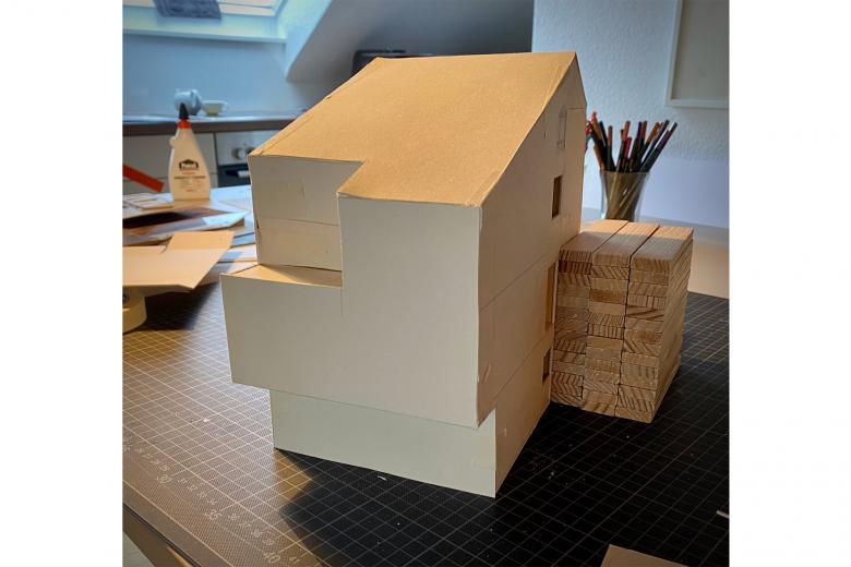 Das Projekt ist ein gutes Beispiel dafür, wie der Entwurfs- und Planungsprozess bei Bauherren Wünsche und Ideen anstößt und konkret werden lässt. Durch meine Vorschläge kamen Themen auf, die vorher nicht artikuliert werden konnten: Wie viel Offenheit fühlt sich gut an, wo braucht man Raum zum Rückzug, welche Farbgestaltung passt? So hat sich der Entwurf im Laufe der Planung weiter verändert – hier ist eine der erarbeiteten Varianten vorgestellt.