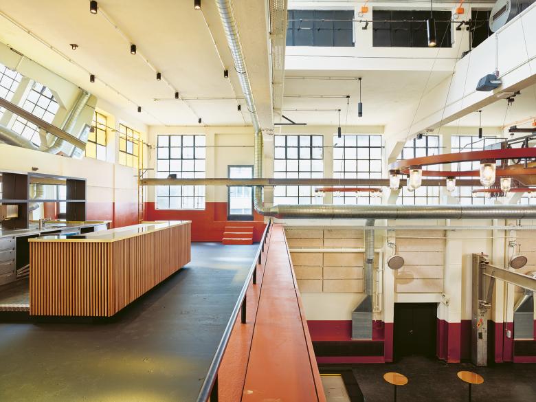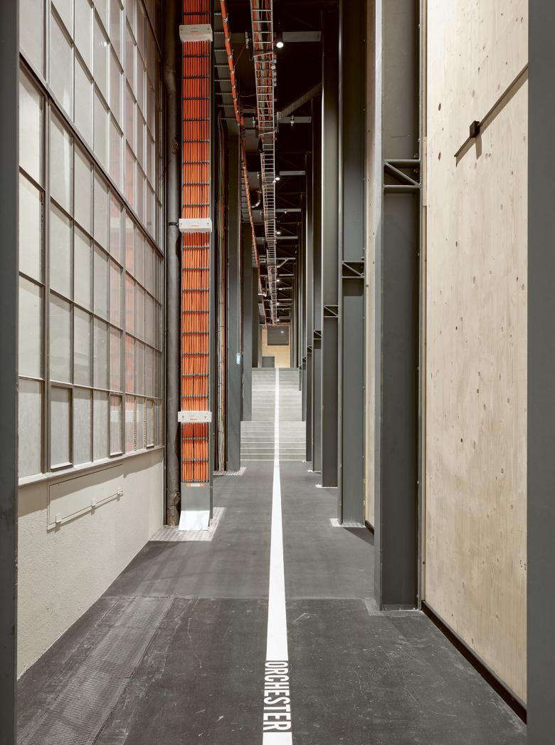 The Tonhalle Orchester Zurich was founded in 1868 and enjoys worldwide recognition. While its permanent home is being renovated, the provisional concert hall was designed to satisfy the orchestra’s and the public’s discerning artistic demands. The former Maag industrial hall, where the Maag brothers’ machine factory produced gearboxes, pumps and cogs until the 1990s, was transformed into a concert hall with excellent sound quality within a very short period. In addition to the construction of cloakrooms, a foyer and a concert hall, the Maag Building K, which is classified as a building worthy of special protection by the preservation authorities, was also equipped with recording rooms, administrative offices, break rooms and a music library.