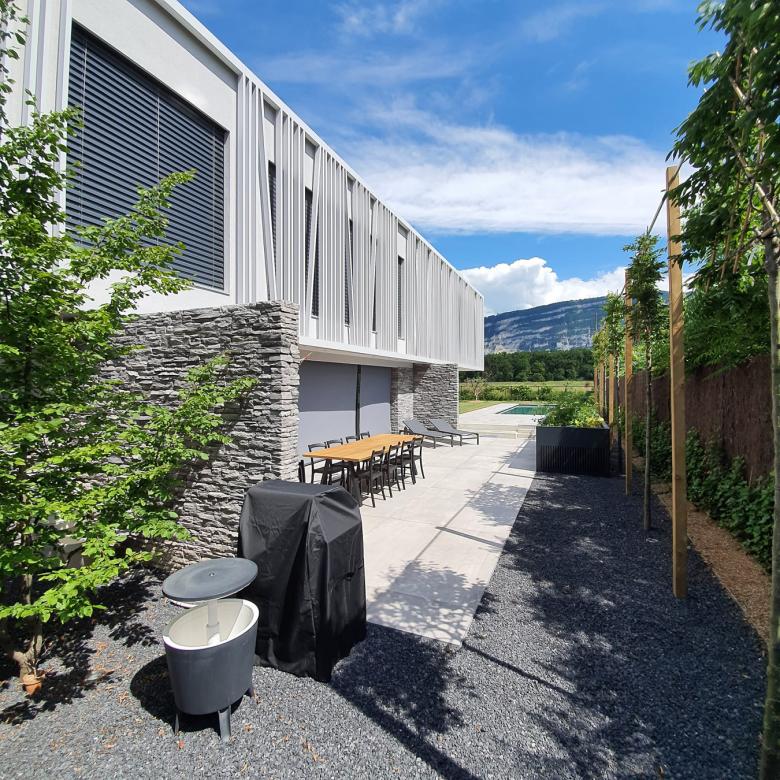 The VILLA VEYRIER is situated in an idyllic small Swiss village with a beautiful panoramic view of the backyard and the Mont Salève. The villa also has a cosy outdoor area including a pool for hot summer days and a campfire for cool winter days. These complement the open outdoor area, which also includes the terrace and lounge. The villa has several rooms, including a master bedroom and a fitness room on the first floor, where the family can enjoy some privacy and relax after tedious days. The minimalist architectural lines and the shape of the VILLA VEYRIER create a feeling of modernity and comfort. VILLA VEYRIER won the International Property Award for the Best Architecture Single Residence Switzerland 2018-2019. More at https://www.studioforma.ch/architecture-projects/residential/villa-veyrier