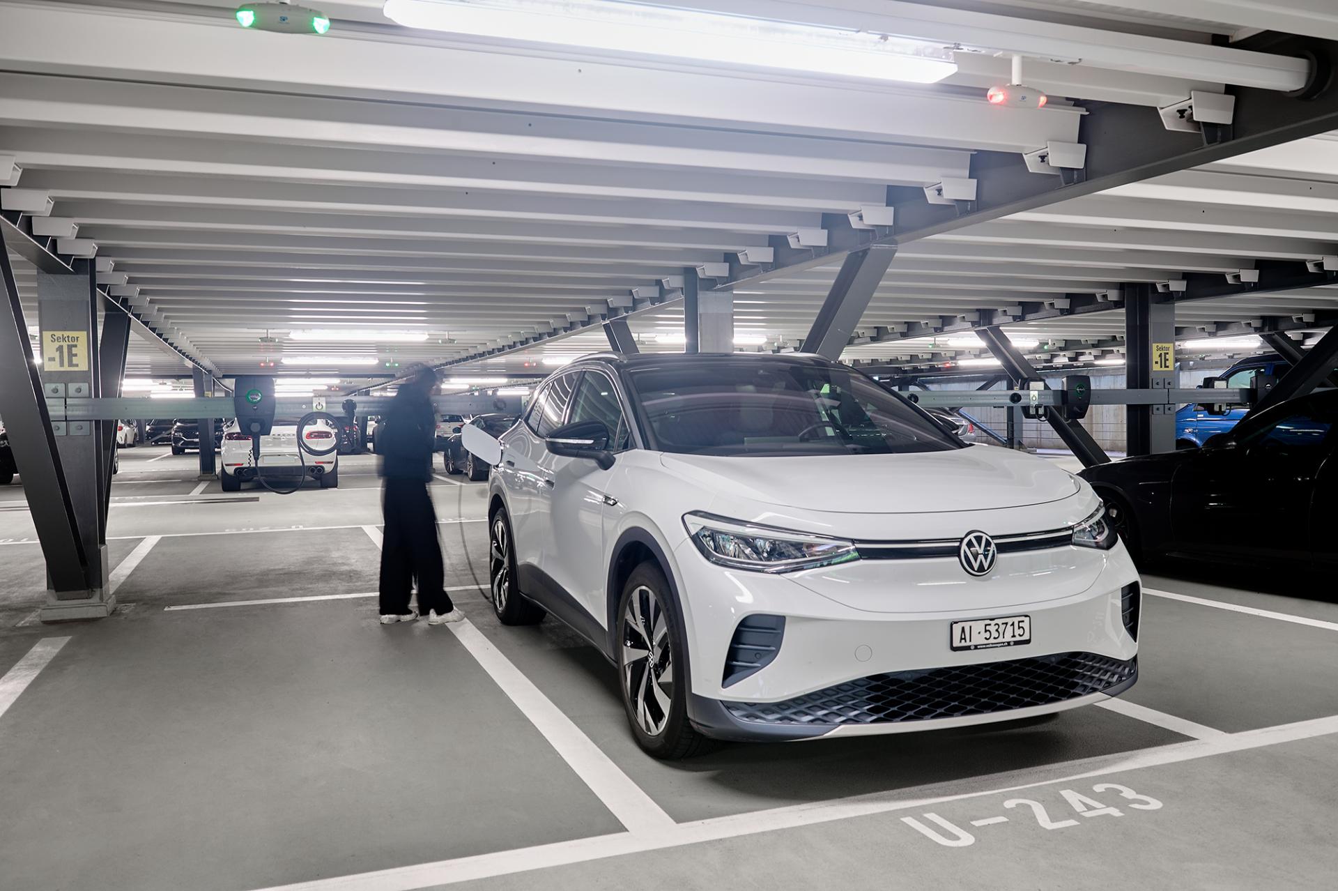 Zur Auswahl stehen verschiedene Angebote mit unterschiedlichen Preismodellen. Eine Flatrate, inklusive Strom und Parkplatz über Nacht und am Wochenende, gibt es zum Beispiel bereits ab 270 Franken pro Monat. Dabei haben die Kund*innen mit ihrer eigenen Parkkarte jederzeit Zugang zum Parkhaus und zu den Ladeparkplätzen. Eine fixe Parkplatzzuteilungen gibt es aber nicht, man kann jeweils auf jeder freien Fläche mit Ladesäule parkieren. Die Parkkarte, die gleichzeitig als Ladekarte eingesetzt werden kann, aktiviert auch den Ladeprozess. Für die Ferienzeit finden sich ebenfalls passende Angebote: Wer ein «Night-and-Weekend»-Abo gewählt hat, kann maximal vier Wochen pro Jahr und für 12.50 Franken pro Tag (statt 29 Franken pro Tag) das Elektroauto während der Ferien im Ladehaus Messe durchgehend parkieren. Das Angebot kann monatlich gekündigt und bequem mittels monatlicher Rechnung bezahlt werden.