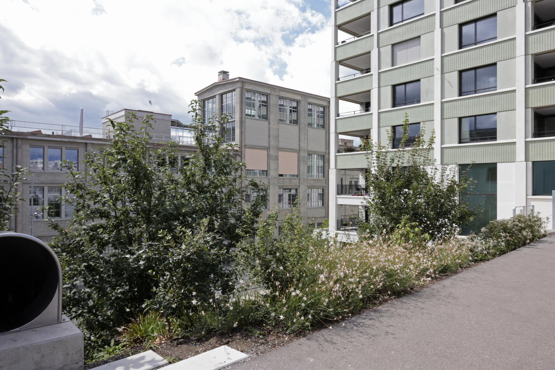 Wir denken verschiedene Verkehrsmittel zusammen, statt sie in Konkurrenz zueinander zu bringen. Darum verfügt das Quartier sowohl über eine gute Anbindung an das öffentliche Verkehrsnetz und ein Sharing-System mit Elektroautos und E-Bikes, das wir gemeinsam mit allride, einem Venture der AMAG Gruppe aufgebaut haben, als auch über ausreichend Parkplätze. Letztere sind vorwiegend im Untergrund angeordnet, damit sie die Aussenraumgestaltung nicht beeinträchtigen und möglichst wenig wertvollen öffentlichen Raum kosten. Gewiss, es gibt auch oberirdische Parkplätze, allerdings nur, wo dies etwa für das Funktionieren der Gewerbenutzungen und für Besucher unerlässlich ist.