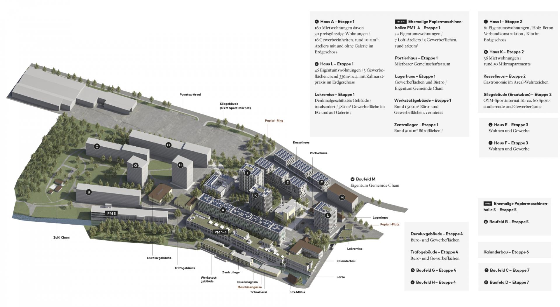 2016 hat die Chamer Bevölkerung ihre Zustimmung zur Bauordnung, zum Zonenplan und zum Bebauungsplan für das Papieri-Areal gegeben. Damit war der Weg frei für die Umwandlung der einstigen Industrieanlage in ein durchmischtes Stadtquartier. Was ist seither geschehen, Herr Aebischer?
