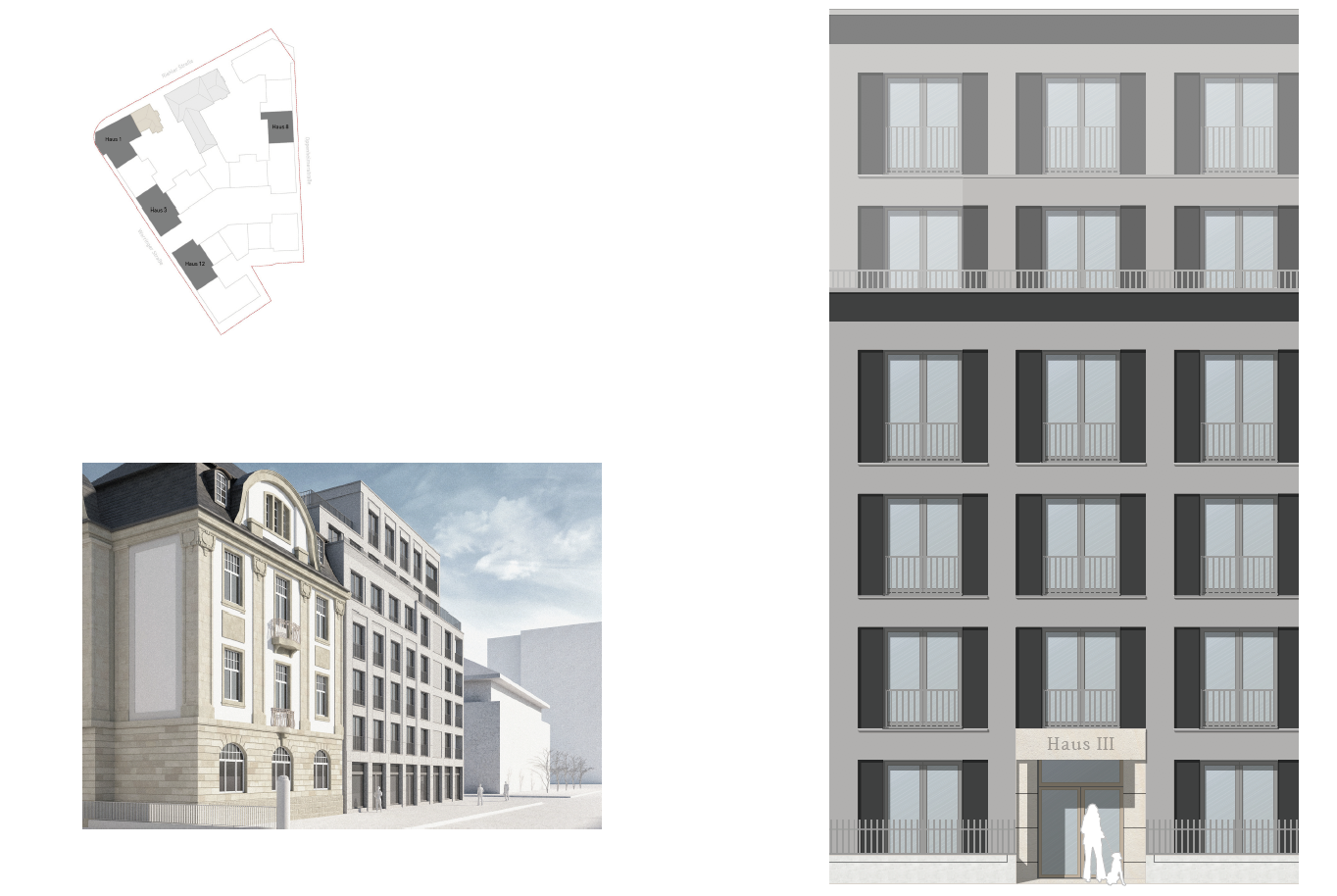 Im Norden der Kölner Innenstadt wird in Sichtweite des Kölner Doms der ehemalige Campus einer Versicherungsgruppe in ein gemischt genutztes Quartier mit 12 Stadthäusern umgewandelt. Trotz baulicher Einheit soll eine hohe Vielfalt an Haustopologien entstehen. Daher wurde der große Häuserblock in 12 einzelne Hauseinheiten aufgeteilt, mit deren Entwurf drei Architekturbüros beauftragt wurden.