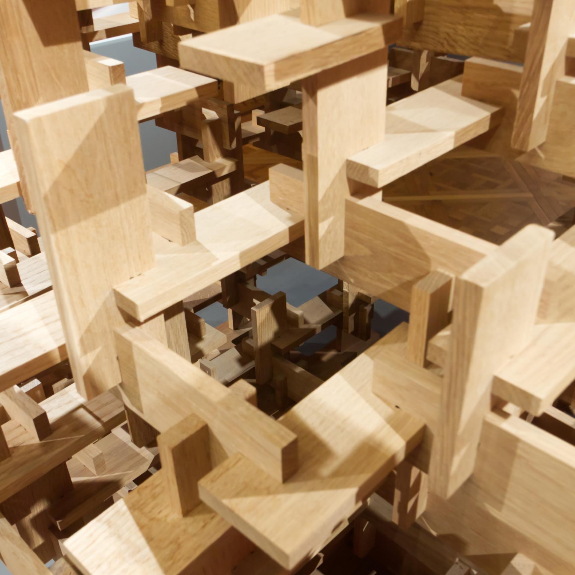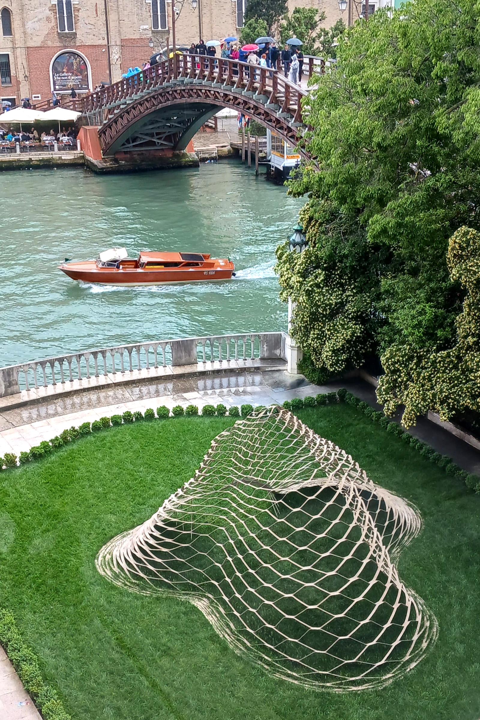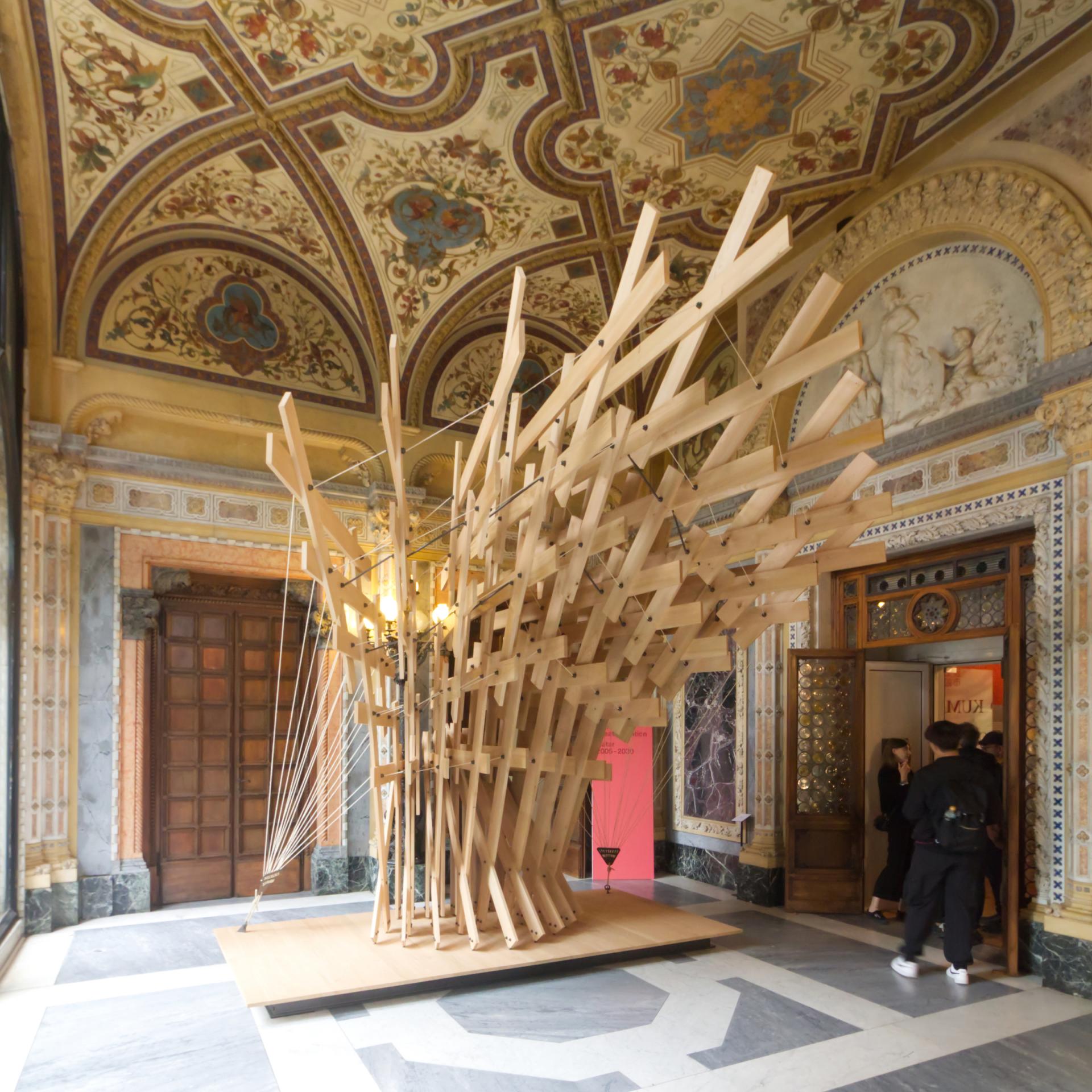 The subtitle for the exhibition, “Onomatopoeia Architecture,” takes its name from a 2015 book by Kengo Kuma and refers to words whose sounds refer to the thing associated with it. Onomatopoeias are often more aligned with comic books (think “ZAP!” or “KABOOM!”) than something like architecture, even in Japanese, where Kanji characters function as logograms. Onomatopoeia is a way for Kuma to distance himself from logic, to find other means of getting people to understand his architecture through language. “When I use [language], it is impossible to make people understand me,” he writes in the preface to the catalog accompanying the exhibition at Palazzo Farchetti, “that is why I always use onomatopoeia.” Thirteen of the manga-like onomatopoeias structure the exhibition in Venice — from para para (solid and void) to zure zure (displacement, flexible). Roughly two-dozen projects by Kengo Kuma & Associates are displayed in eight of the palazzo's rooms, though visitors are also treated to two site-specific installations. Photographs from our our visit follow, accompanied by more information on the exhibition and projects.