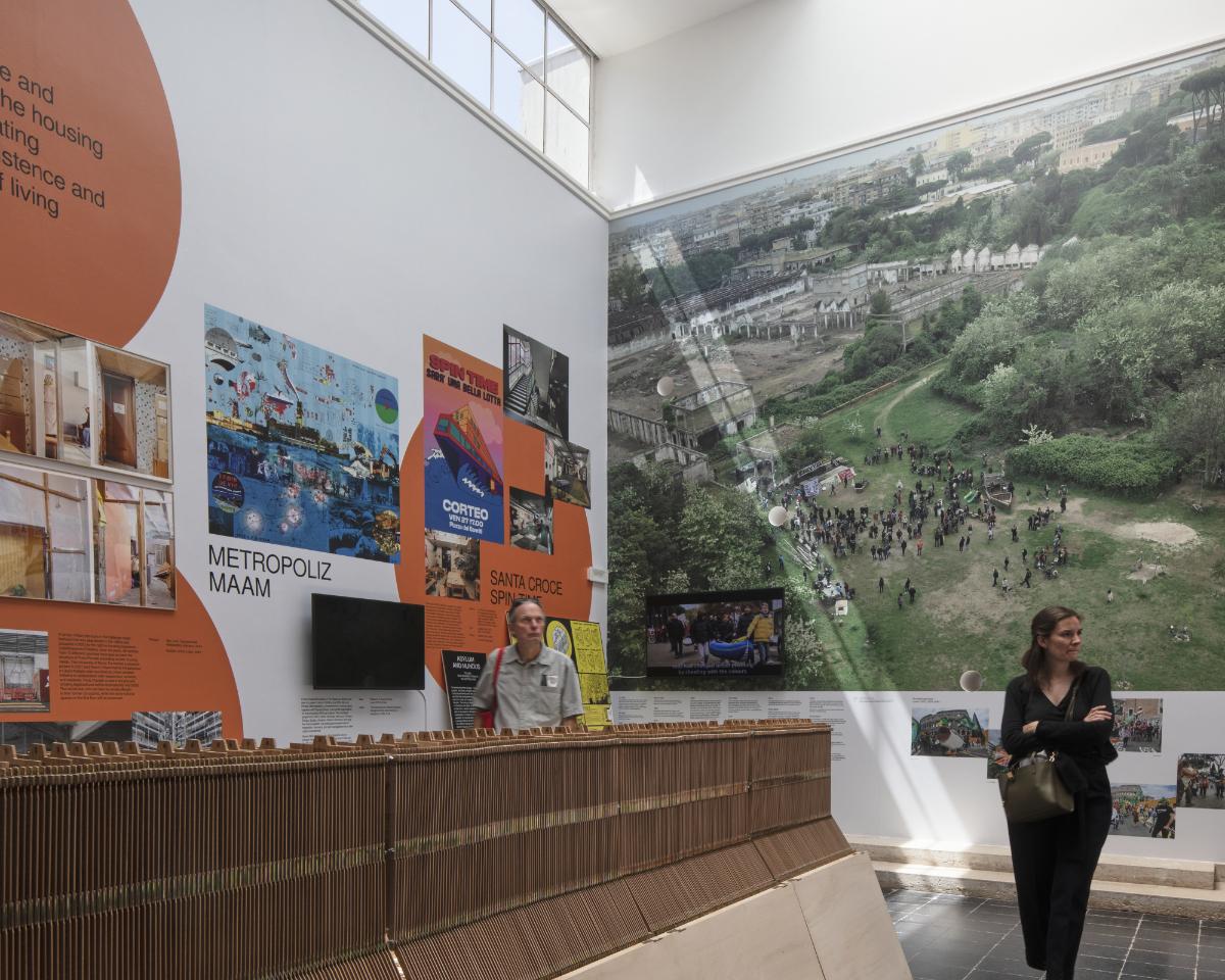 Rom und Wien: zwei europäische Metropolen, die auf den ersten Blick wenig gemeinsam haben. Genau das macht eine Gegenüberstellung zweier Formen städtischer Intelligenz – um es mit dem Biennale-Motto von Carlo Ratti zu sagen – umso spannender. Ausgangspunkt ist nicht nur die Feststellung eines globalen Wohnungsproblems, sondern überdies die Diagnose einer Polykrise, die sich unter anderem in Hitze, sozialer Ungleichheit oder Kriegen ausdrückt. Damit ist noch nichts Neues gesagt. Doch der Vergleich der beiden urbanen Realitäten erweist sich als extrem spannend. Pollak, Obrist und Romito stellen das Top-down-Modell des sozialen Wohnbaus in Wien den Bottom-up-Praktiken der Selbstorganisation der Zivilgesellschaft in Rom gegenüber. Der Pavillon verbindet die Vermittlung von Inhalten mit einer gewissen Portion Aktivismus, ohne dabei in Alarmismus oder platte Polemik zu verfallen. Schon dafür gebührt diesem Pavillon großes Lob.