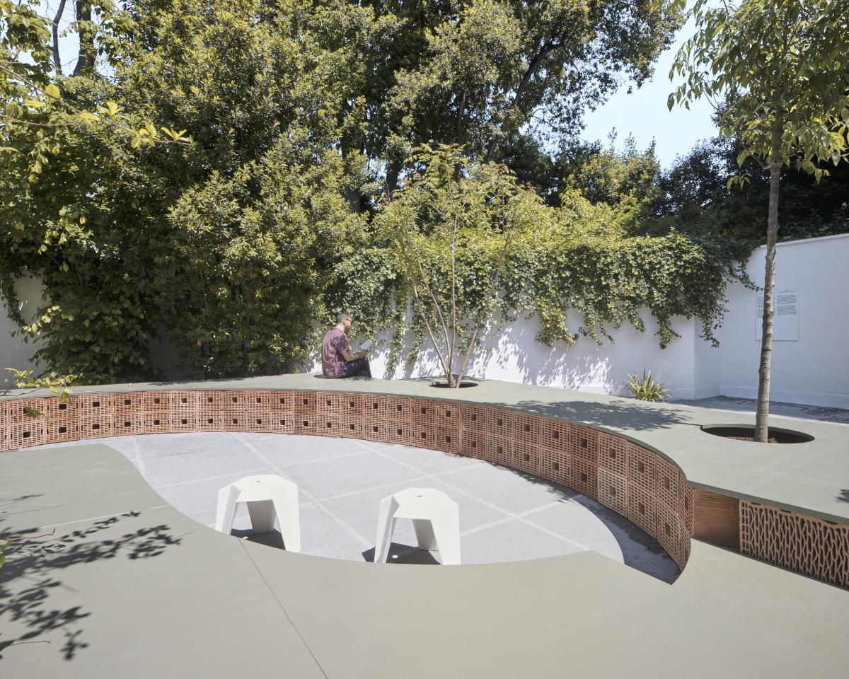 Der Hof lädt zum Austausch und zum Diskutieren ein. (Foto: © Flavia Rossi)