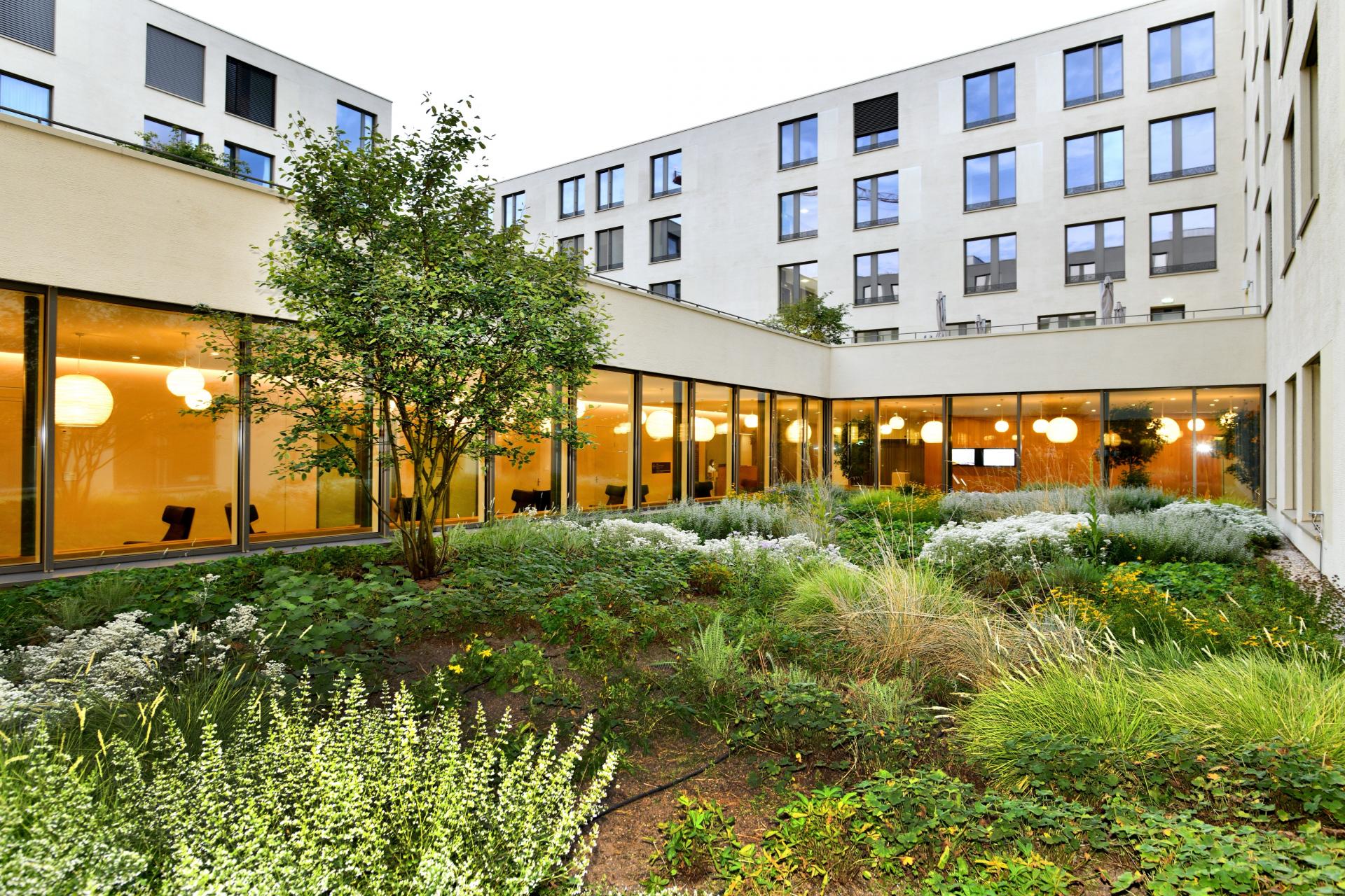 The seven-story new building has 176 patient rooms, several communal rooms, and a roof garden as a recreation and meeting area. (Photo: Universitäre Altersmedizin Felix Platter)