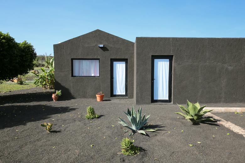 Am Rand des etwas erhöhten Grundstückes ordnet das Gebäude sich vollkommen der Umgebung unter. Seine mit Picon (Lavakies) bedeckte Fassade gräbt sich in den leichten Absatz des Geländes und nutzt die geschützte Mulde als direkten Aussenraum und als begrünten Garten.