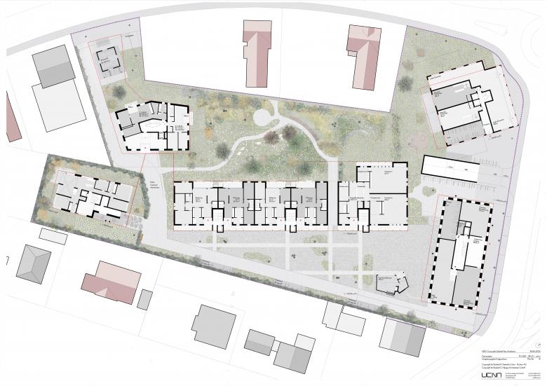 Planung von drei Wohnhäuser mit insgesamt 80 Wohnungen im Miet- und Eigentumsverhältnis. Für eine nachhaltige Siedlungsentwicklung unterstützt die Bebauung die Belebung des öffentlichen Raums und eine schafft durch variantenreiche Wohntypologien ein ausgewogene Durchmischung des Quartiers.