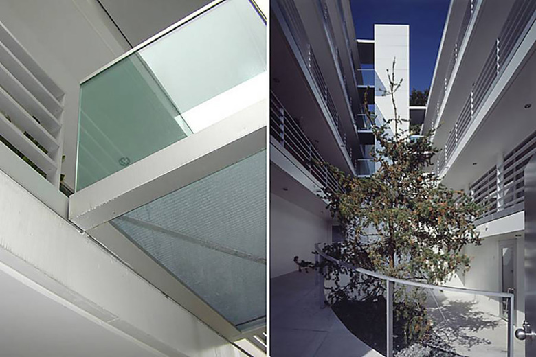 Die hohe Transparenz der Anlage kann über im Glas integrierte Lamellen graduell gesteuert werden. So lässt sich die Privatsphäre jederzeit wahren. Die Wohnungen weisen alle eine kontrollierte Wohnungslüftung auf. Die Wärme wird über Erdsonden gewonnen und mit einer Wärmepumpe transportiert. In den einzelnen Wohnungen wurden individuelle Wünsche der Bauherrschaft realisiert: Riemenparkett, Mosaiksteine, fugenloser mineralischer Bodenbelag (Bodarto), Stucco, oder speziell entworfene Möbel.