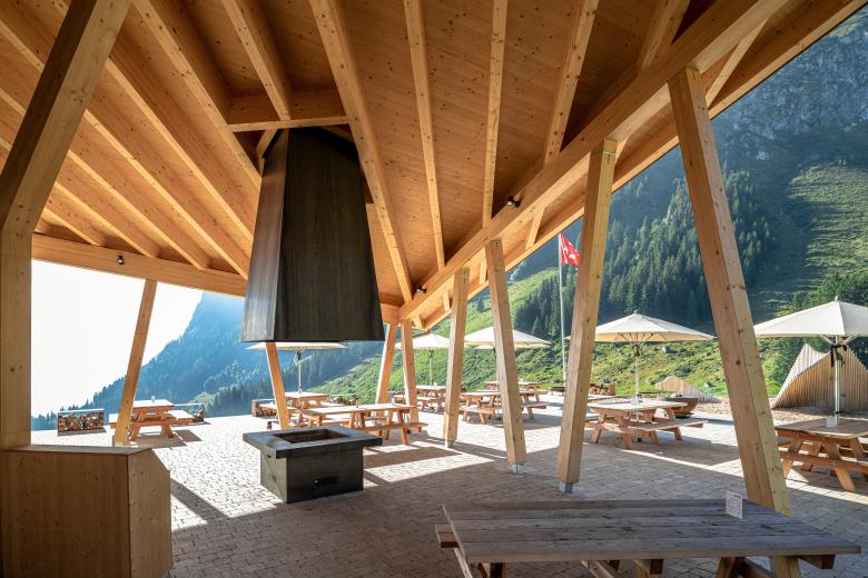 Die leichte wie robuste, unterhaltsarme Konstruktion wurde im Hinblick auf einen optimalen Lebenszyklus gedacht. Pure Materialien prägen den Ausdruck des Gebäudes, das einen wertvollen Beitrag zur Unterstützung eines nachhaltigen Tourismus leistet.