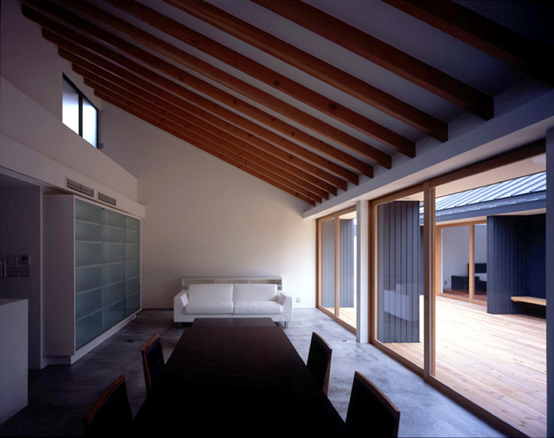 廊下やホールといったものを持たないこの住宅では、三つのパヴィリオンを結ぶこの外部空間が、この住宅のすべてのアクティビティのための舞台となる。それはもはや中庭と呼ばれるような、静かで安定した空間ではなく、さながら客家の「街」や「巷」か、あるいは中国の胡同Hu-tong のような露地の空間、さながら小さな都市空間のような様相を見せている。住宅の内部にパブリックな空間としての外部空間を導入するという、どこか矛盾した形式を試行することで、アジアの住宅のプロトタイプについて考えてみたいと思っていた。