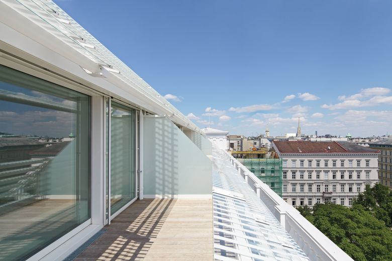 Zusammen mit dem zweigeschossigen Dachgeschoßaufbau und dem zu einem Wohngeschoss ausgebauten 4. Obergeschoss beinhaltet das Gebäude 19 Wohneinheiten in den Größen von ca. 100 m² bis 300 m² mit großzügigen Terrassenflächen.