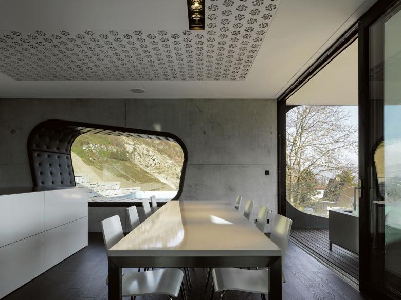 Das Gebäude für den Architekten Carlos Martinez vereint Atelier und Familienwohnung unter einem Dach. Es stellt eine Maschine dar, die Lebensqualität während der Arbeit und in der Freizeit generiert. Das Thema Work-Life-Balance spiegelt sich im Raumkonzept wider. Privatleben und Beruf sind vernetzt und getrennt zugleich.
