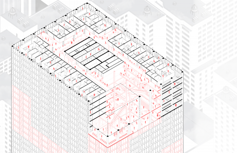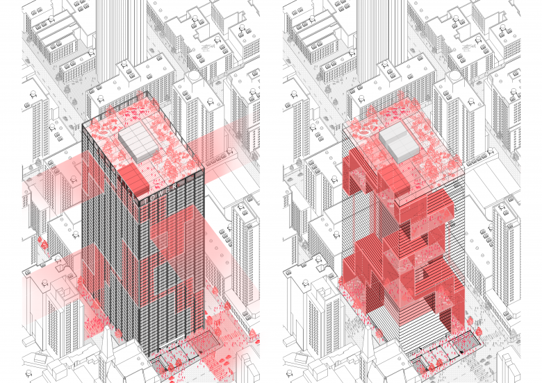 1633 Broadway Adaptive Reuse is the studio’s design proposal directly responding to the office crisis, honoring the legacy of the existing structure, adapting it and converting it to the needs of the 21st century. Demonstrating a unity of working and living spaces, the project sets a new precedent and typology for contemporary living within a major city actively addressing the paradigm shift of office culture.