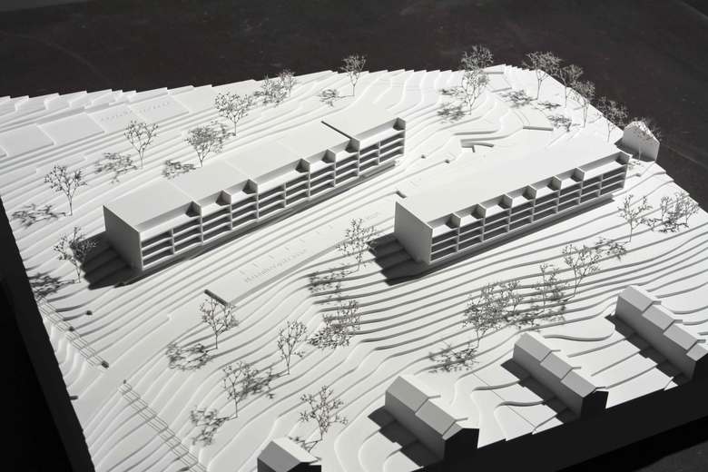 Zwei Wohnhäuser stehen als Solitärbauten am Hang des Gebietes Birnbäumen, etwas ausserhalb des Siedlungsgeflechts von St.Gallen, in der Landschaft. Ihr Masstab knüpft nicht an benachbarte Siedlungsmuster an, sondern bezieht sich auf die Weite der Landschaft. Das vorgeschlagene Projekt versucht in diesem Sinne nicht, im steilen Hang eine inselartige, dorfähnliche Überbauung zu schaffen. Neue Aussenräume, neue Binnenräume werden bewusst vermieden, um die Wiesenhänge nicht zu verunklären oder zu zerstückeln. Das Projekt konzentriert sich auf zwei Baukörper und ermöglicht dafür, dass die grosszügige Wiesenfläche weitgehend belassen werden kann. Dank ihrer Anordnung beeinträchtigen sich die beiden Häuser kaum in der Aussicht und in der Besonnung.