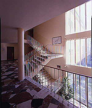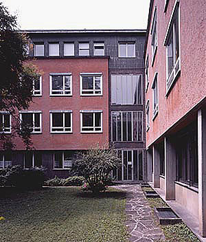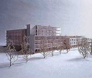 Die erweiterung eines winkelförmigen amtsgebäudes aus den 60er jahren fügt an dessen längeren schenkel einen gespiegelten winkelbau an. an der schnittstelle von alt und neu bildet der neue haupteingang mit der zentralen vertikalerschliessung ein signifikantes gelenk. zugleich entsteht durch das geschoßweise pendeln von raumschichten um die gangachsen eine lebhafte plastische verschränkung und höhenstaffelung zwischen der alten mittelgangstruktur und dem vorwiegend einhüftigen neubau. primärkonstruktion aus stahlbetonscheiben, die auch als trennwände der büroräume wirken; sekundärerschließungen entlang den fassaden bieten kombinationsmöglichkeiten. die fertigteilgeschoßdecken enthalten alle versorgungskanäle und verjüngen sich zur außenwand; einschalige glasfassaden nach norden und osten, zweischalige nach süden und westen;