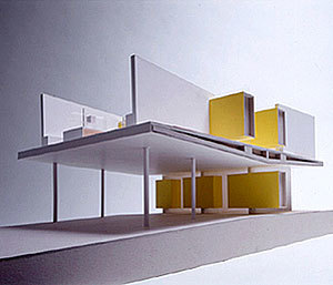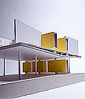 modular gegliedertes lüftungssystem mit heiz- bzw. kühlwirkung, gesteuert über luftbrunnen und wärmetauscher; systemnutzung der abwärme von personen und geräten; die trennwände zu den gängen sind als "schwebende regalmöbel" 80 cm tief ausgebildet und leuchten in gelbtönen prägnant durch die glasfassaden hindurch. siegerprojekt eines landesweiten wettbewerbs.