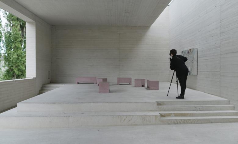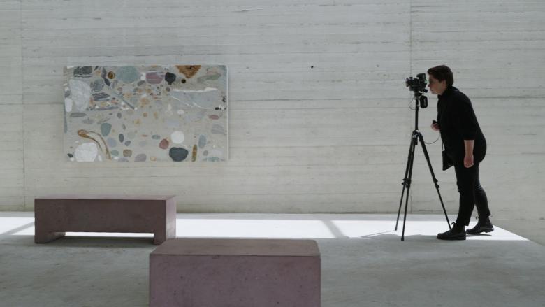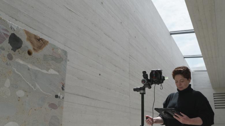 Kurzfilm über die Architekturfotografin Nina Baisch in der Pausenhalle der Schule Kreuzlingen von Beat Consoni.
