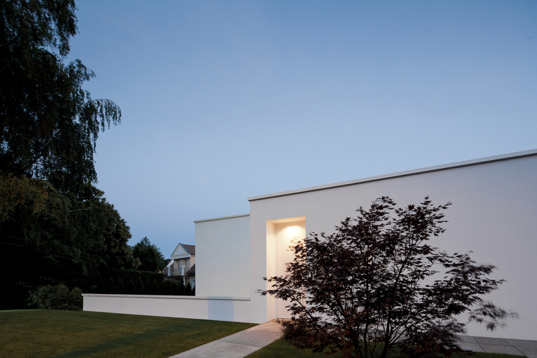 Auf einem leicht abfallenden Eckgrundstück in einer gewachsenen Siedlung bei Frankfurt am Main sollte ein Wohnhaus entstehen, das der Bauherrenfamilie sowohl ein Maximum an Privatsphäre als auch ein Höchstmaß an Offenheit bietet. Als „Los Angeles Loft-Feeling“ bezeichnete die Bauherrin ihren Traum vom angestrebten Wohnambiente gepaart mit dem Wunsch nach einem größtmöglichen Raumerlebnis.