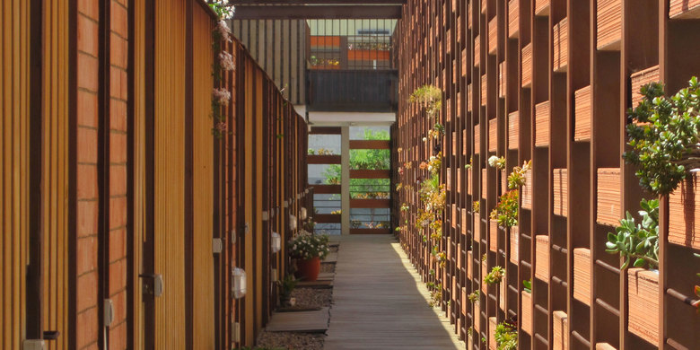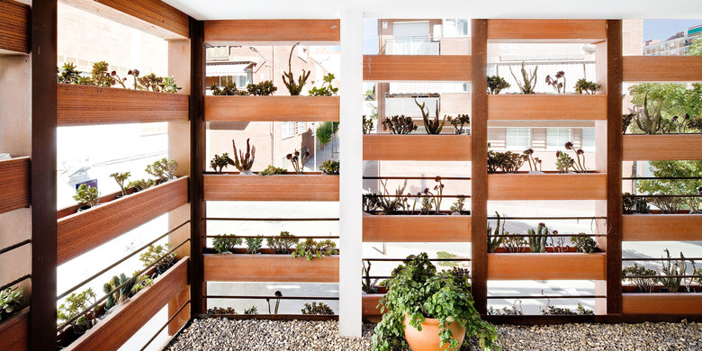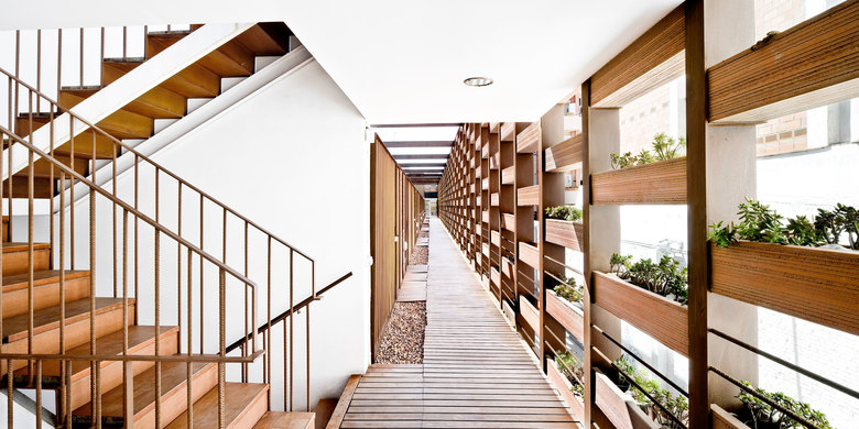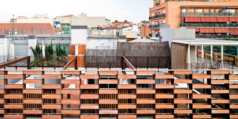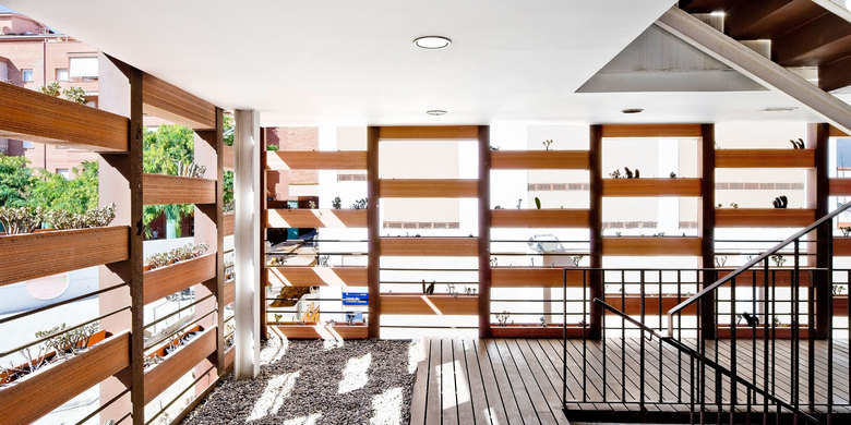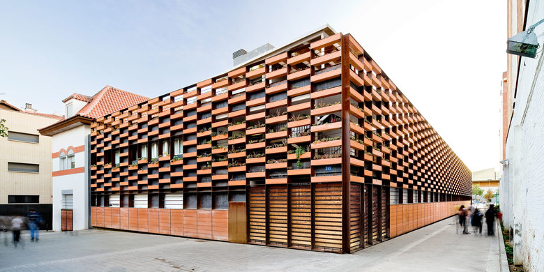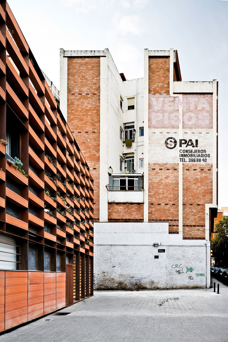 ...A city with an established industrial tradition... A product of the rapid growth process that took place at the end of the Spanish civil war...Interaction and mixing... An increase in population in sync with the post-war period, and the establishment of local industries leading to New landscapes... New memories... New forms of life... A city characterized by the spread of ceramic medians of varying heights and that are in sync with the processes of the region... A project that adapts to the traces of the old industries... An industrial structure that is part of the original structures of the neighborhood (1940) as well as its present as a reminder of the pre-existence of a bygone age... An envelope/pattern that acts as a container, preserving the repurposed usage through time... from the industrial ̶ a factory that produces chocolate and margarine ̶ to the living space ̶ 287 units, spaces that blur the boundaries between the city and the home, passages, hallways, stairs, elevators, halls... Inside...Outside... Steel, clay, gravel and wood... Cross ventilation, rain and gardens...A dry enclosure in which the materials usually found on the market are abstractly recycled; transforming a ceramic lintel into a large plantation pot, and then repeating that unit 1590 times giving the building its volume and shape... A pattern into which are applied traditional plants (mostly self regulating species) ...Vegetation that transmits an inner city which speaks to the human scale... A building that supports activities, which may reflect different coexisting uses... And that is gradually colonized by its inhabitants.