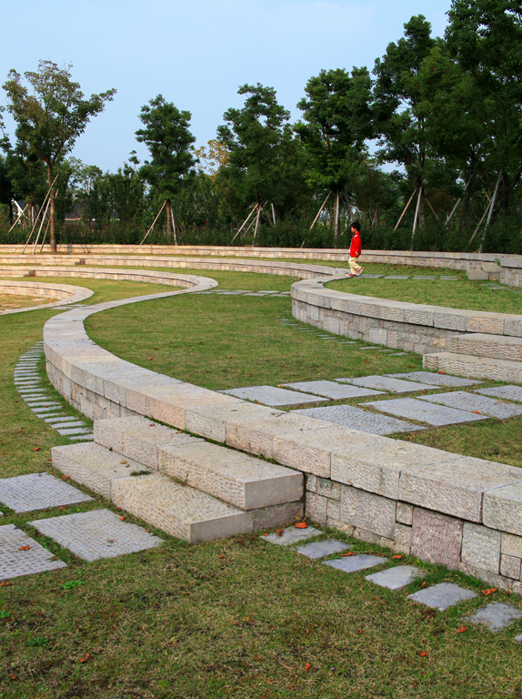 The future Taihu Lake New Town will form a special green structure, “Three vertical strips and one horizontal strip”. Changguangxi Wetland, one of the vertical belts and located in the west of Taihu Lake New Town, is a typical river wetland with regional characteristic. It connects the surrounding mountains with the urban area, and links Taihu Lake with Wulihu Lake. The project is Changguangxi Wetland Park Phase II and its site, 3.5km long, is in the middle part of this strip.