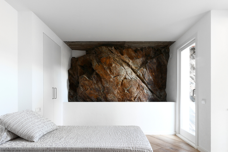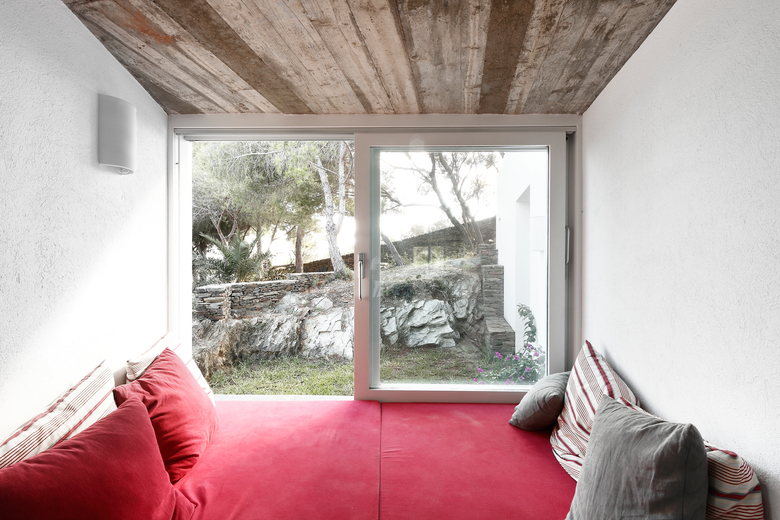 The secular action of Cadaqués population interpreting the natural space and setting out the stone terraces in a dry process for the planting of olive trees and grapes, it is a morphologic characteristic of “Cap de Creus”. The course of time and the scanty means, they thought a technique and trace the system ground rules that optimize the natural resources. In an olive grove placed at the limit of “Ses Oliveres” beach and a certain distance of the old part of the village, is where that residence is projected. The stone terraces are parallels a the old stream that canalize the “tramontana” dry wind and, following the slope turn to west to receive the freshness of “garbí”… walls between 40 and 70-cm-high that with separations between 4 and 5 metres help to exceed the original drop of the topography, placed to continue the line of minimum slope. About 15 olive trees, 10 pines, 5 cypress and 2 mimosas, form the vegetal mass that crosses the plot from the east to the west, leaving a north gab that, as one, answer to the more elevated heights since where we meet again the sea. The house do not use up all the regulatory height because it searchs the horizon between the ground and the olive leaves. New horizontal planes from the old stream since the overhead of the plot turned up, passing through a ground floor that, as a gab inside the dig rock and the pre-existing olives, has a good thermal inertia and crossed ventilation agreed with the dominant winds. The structure of the bearing wall is drawn up tangent to the original structure of the agricultural construction… The terraces that were removed to build the new topography go back adapting itself to other needs, taking roots of the act of living again in the place.
