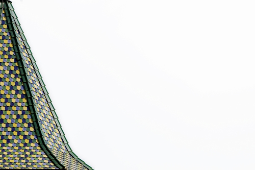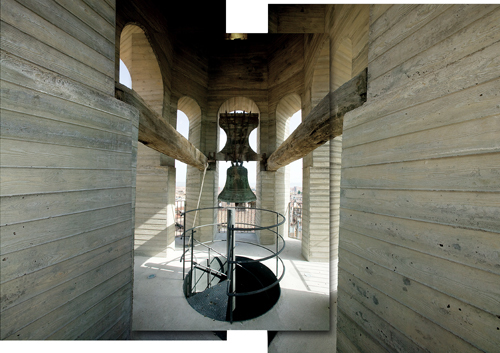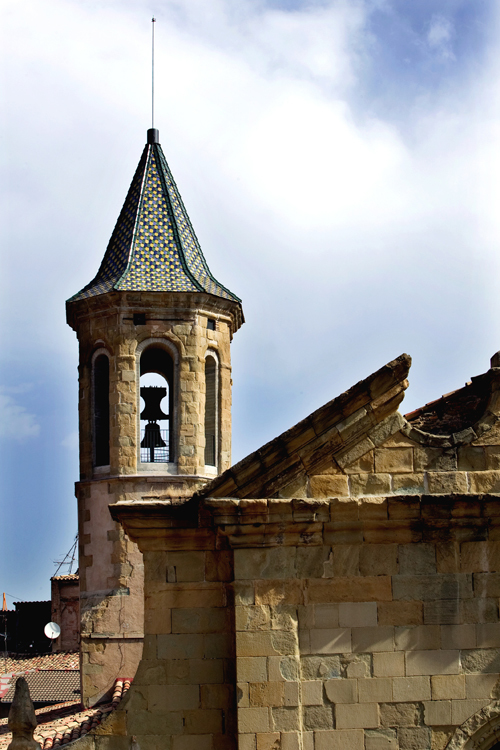 The cover: The key element of the intervention has been the reconstruction of the original inclined roof. To decide the roof proportions we have studied old engravings and 18th and 19th centuries paintings of the city of Vic (pictures that contents the original state of this roof) and we have studied other baroque belfries with similar covers. The new structure is made with laminated wood on the interior face and covered with pottery tiles, these are an imitation of the original ones and they was made by the ceramist Antoni Cumella. In the church, the most part of the original colour tiles are still preserved, but they are not able to be reused because they are damaged. From the three original colours we have chosen six tones in order to give it a timeless aspect to the final finish.