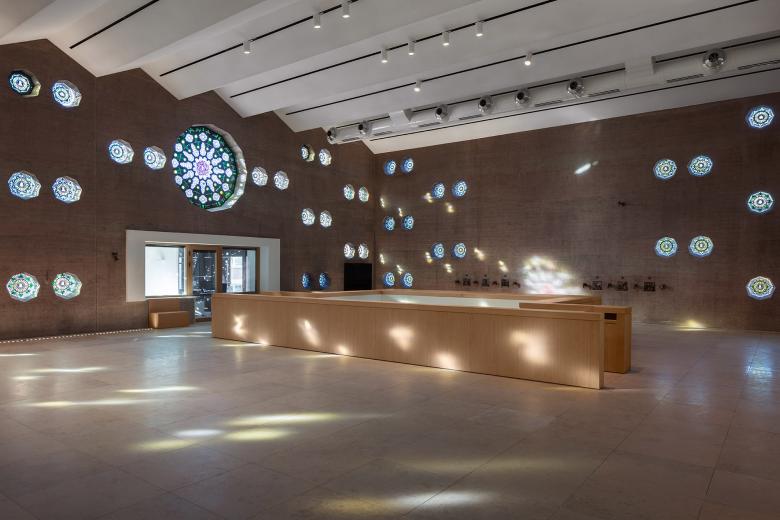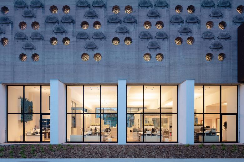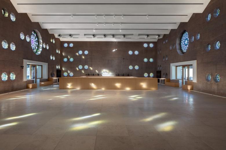 Der Umbau der von Gottfried Böhm 1955 errichteten Kirche "Zur Heiligen Familie", wurde von nebel pössl architekten geplant und durchgeführt. Nach der Entweihung befindet sich im Erdgeschoss des zweigeschossigen Baus die Verwaltung einer Wohnungsbaugesellschaft und das Obergeschoss dient als Veranstaltungsraum.