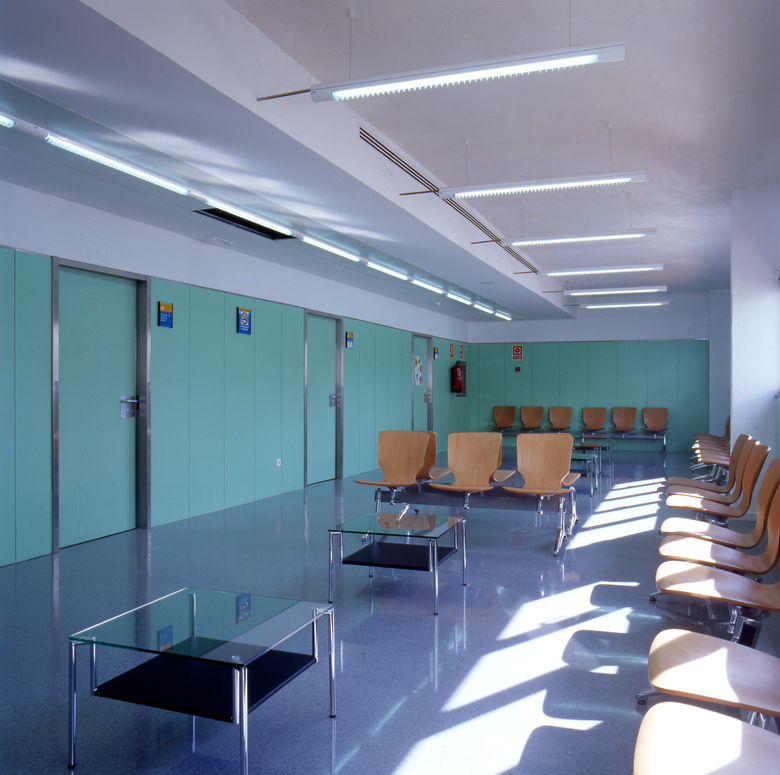 Located in a residential area undergoing development on the outskirts of the town, the design proposal was based on reducing the visual impact of the building within the context of the two-story houses surrounding it while at the same time establish the identity of the center as a public building. Consisting of a central volume with two lateral volumes, which are articulated by the geometry of the site, a double criteria was used to organize the functional organization: on the one hand, similar functions are grouped together in each of the three blocks and on the other hand, the different departments are distributed on specific levels according to their use. The differentiated entrances define the public character of the center with pedestrian access via a plaza leading to the double-height entry hall and the ambulances’ entrance is through a covered area on the other side. In response to the luminous quality typical of the architecture of Ibiza, the principal materials utilized are white stucco and glass.