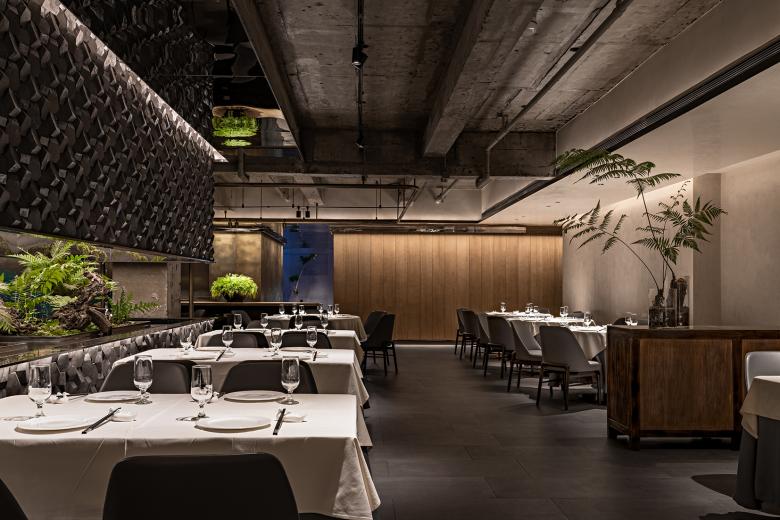 On the extremely simple and natural palette, the use of artistic techniques, materials, and lighting makes the entire restaurant unique.