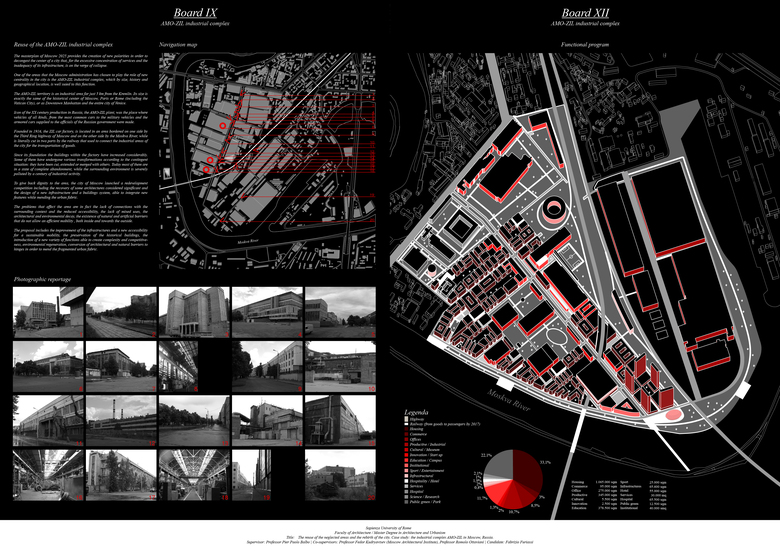 "This thesis is centred on the recognition and reuse of neglected areas that have played, and might continue to play, a significant role in the development of Moscow. Industrial plants, military zones and transportation hubs, for their primary function are strategically positioned in the territory, although they are often left in a state of decline."