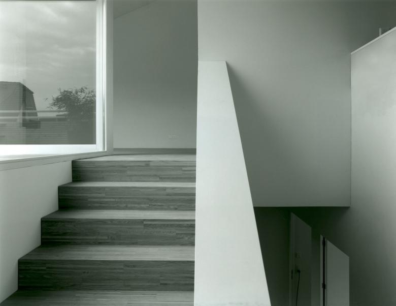 Das mitten im Dorfkern von Steinhausen stehende Gebäude beinhaltet im Erdgeschoss zwei kleinere Ladenlokale und in den oberen Geschossen drei strukturell identisch aufgebaute, dreigeschossige Wohneinheiten. Über einen gartenseitigen, gedeckten Aussenraum wird das Gebäude für die Wohnnutzung betreten. Eine einläufige Treppe führt in die Loggia im ersten Obergeschoss, von welcher aus die Wohneinheiten erschlossen sind. Der Wohn- und Essraum befindet sich als räumlicher Abschluss zuoberst unter dem asymmetrisch geneigten Dach. Der wohnungsinterne Aussenraum ist als Einschnitt im Dach ausgebildet und bildet räumlich eine seitliche Erweiterung für den Wohnraum. Das ganze Gebäude ist - in Erinnerung an den vormaligen Zimmereibetrieb auf dem Gelände - mit einer feingliedrigen Douglasholzfassade eingekleidet.