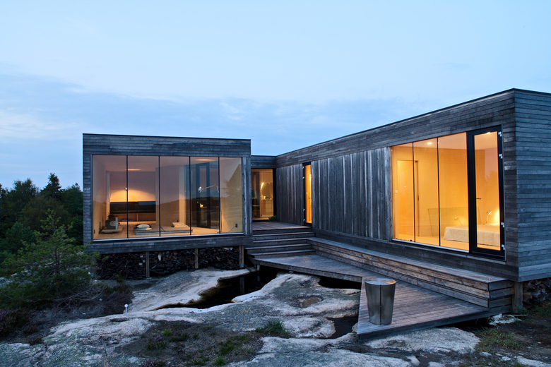 The house is beautifully situated on the top of a hill overlooking the ocean and the horizon, placed in the midst of an uncultivated landscape on a small peninsula. The design of the house allows a close interaction with the surrounding nature and the beautiful scenery. It provides a feeling of being outdoor when inside. The small scale of the house together with the use of wooden materials that will gradually develop a grey patina allows the project to interact and fit in with the existing shape and natural colours of the surrounding landscape. At the same time the design contrast with the traditional building practise of the area.