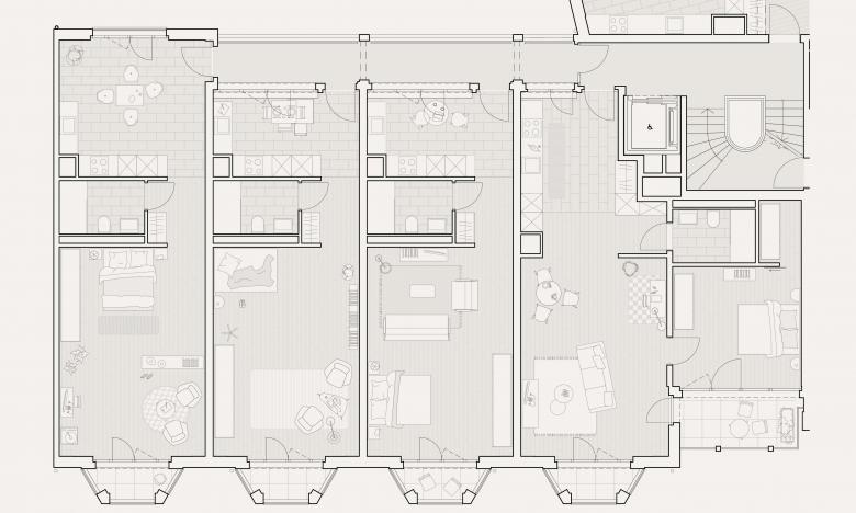 Das Wohn- und Geschäftshaus an der Seefeldstrasse in Zürich bestehend aus einem denkmalgeschützten Eckhaus und zwei in den 1980er-Jahren ergänzten Neubauflügeln wird einer Totalsanierung unterzogen. Die schlecht gealterte Fassade der Anbauten konnten wir dank einer gestalterischen Beruhigung modernisieren und in rücksichtsvollen Bezug zum Eckhaus setzen. Im Innern wurde ein verändertes Wohnangebot mit zeitgemässem Erscheinungsbild realisiert. Während die Wohnungen in den Anbauten der 1980er Jahren auf den Rohbau zurückgebaut wurden, blieben die Büroräumlichkeiten des denkmalgeschützten Eckhauses in Betrieb und erhielten nur punktuelle Eingriffe. Die baulichen Herausforderungen wurden durch innovative konstruktive Lösungen gemeistert und mit der Seewasserzentrale im Contracting konnte eine nachhaltige Haustechnik integriert werden.