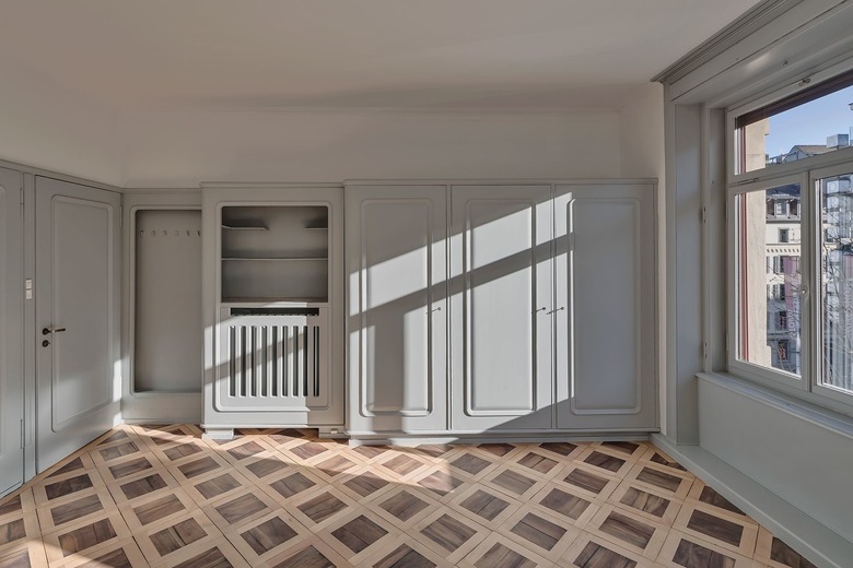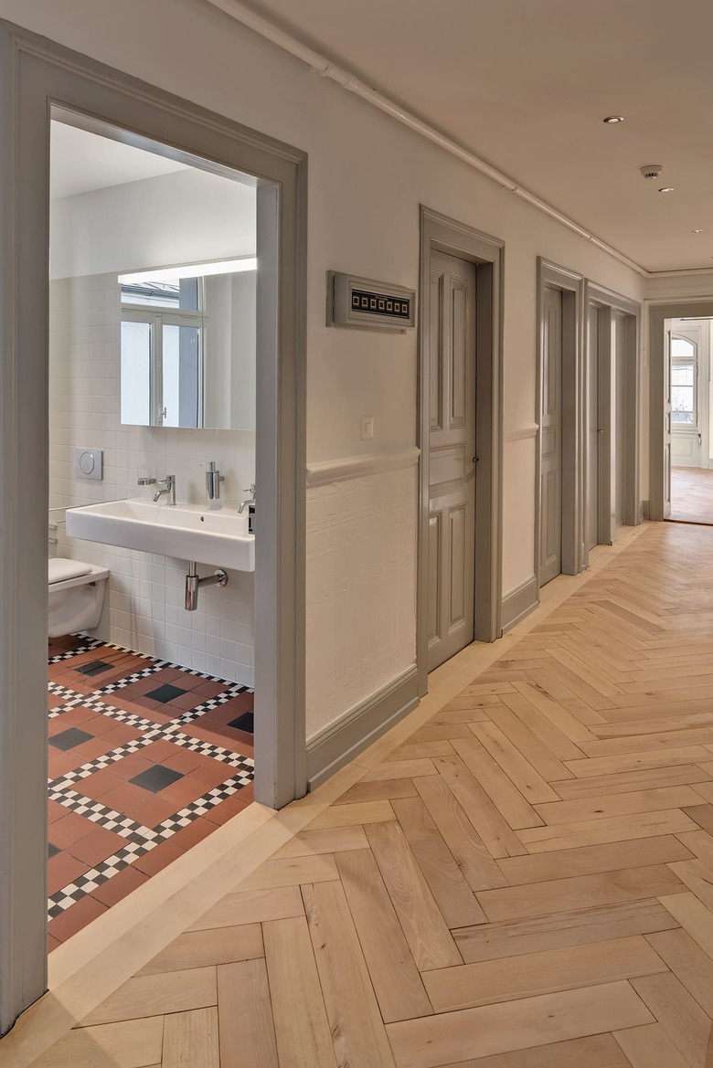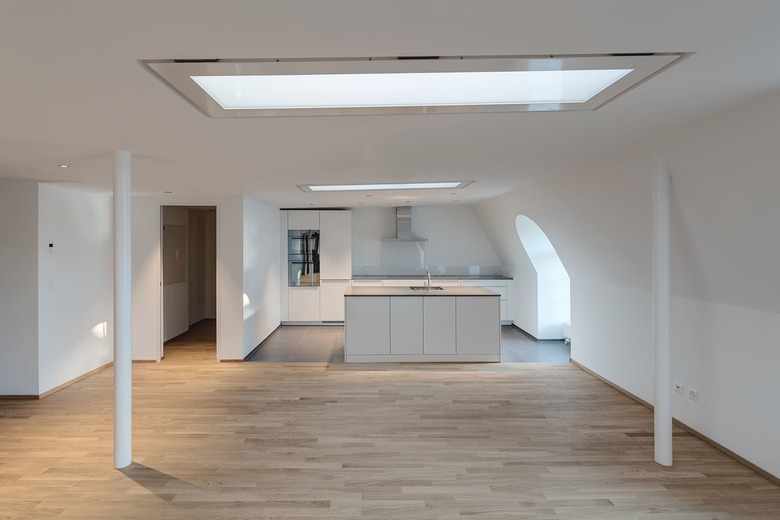 um eine wohnnutzung zu ermöglichen wurden die fenster für einen ausreichenden lärmschutz ersetzt und die geschossdecken der wohnungen für einen guten schallschutz umgebaut. hierfür wurden die historischen massivholzböden aus- und anschliessend mit neuem trittschallaufbau wieder eingebaut. die haustechnik wurde komplett entwirrt und neu pro geschoss und gebäude autonom aber flexibel verbindbar neu aufgebaut.