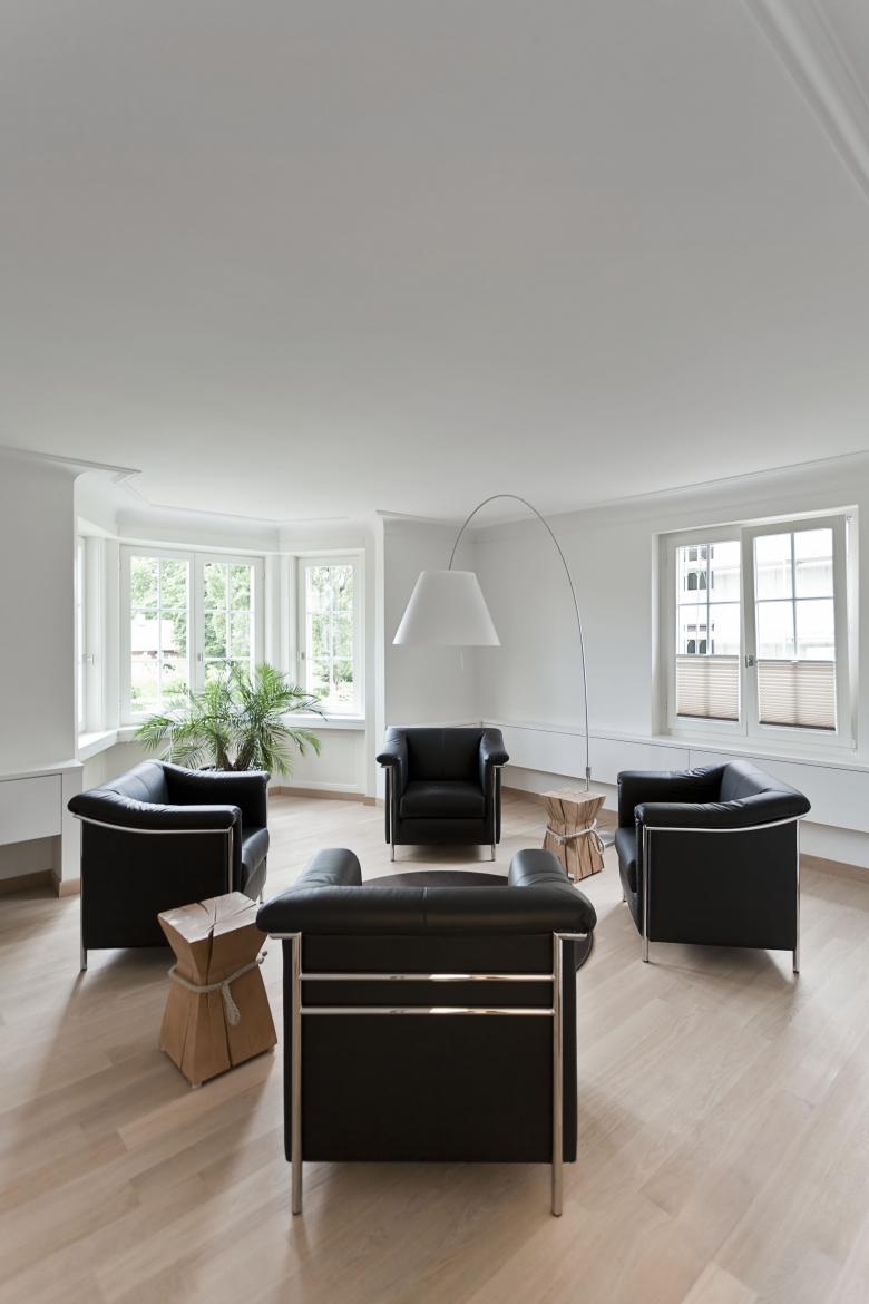 Das villenähnliche Geschäftshaus aus dem Jahr 1926 musste aufgrund eines Mieterwechsels baulich an die aktuellen Bedürfnisse angepasst werden. Beim Umbau sollte der ursprüngliche Charakter des Baus wiederhergestellt werden. Dazu wurde ein Erker, der 1991 angebaut worden war, entfernt. Im Innern wurde zudem in den drei Hauptgeschossen die alte Bürostruktur rückgebaut und es entstanden offene, helle Geschäftsräume.