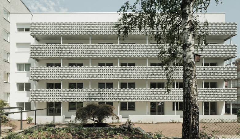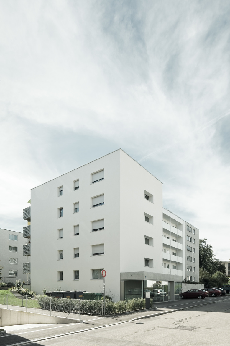 Gesamtsanierung der Alterssiedlung aus den siebziger Jahren mit Wohnungzusammenlegungen. Neue Gemeinschaftsbereiche. Balkone.