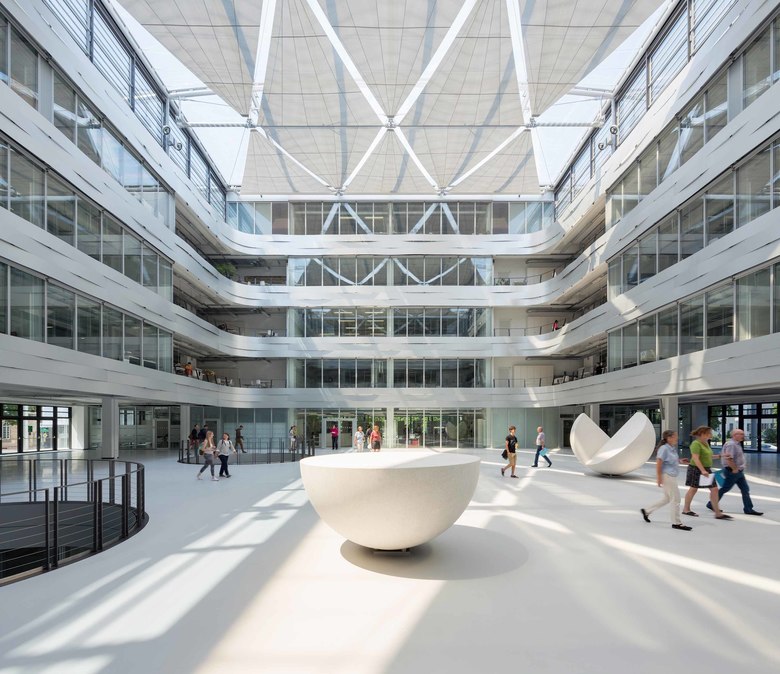 Das Gebäude erhielt eine neue Fassade mit deutlich verbesserten Wärmeschutz, sowie eine energieeffiziente Haustechnik. Um die Nutzfläche um 2.200 Quadratmeter zu erweitern, wurde ein zurückgesetztes Halbgeschoss aufgestockt.