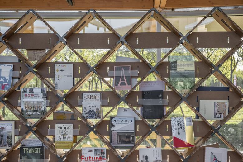 The exhibition venue is a small building complex with a fan-shaped plane. Buildings in the north and south of the site are arranged symmetrically along the east-west axis. Among them, the north building consists of two independent spaces under the same roof, presenting two small circular sectors on the plane, one of which is used for forum and activities, and the other is for special exhibitions including SYU HEOI CANTON and Expo of Local Publications.