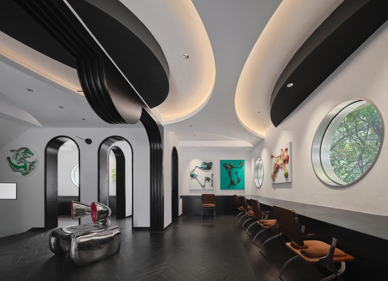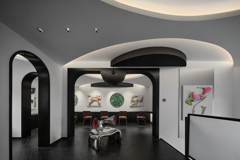 The original structure of the interior was outdated, with multiple compartments and complicated passageways, leading to a waste of space. Unlike the conventional solution of "open" demolition, however, the design team focused on a gallery-style exhibition perspective based on the organization of the disarrayed blocks. By compressing the depth of the space with paintings, the volume of the partition walls is dissolved, thereby reinterpreting the less-than-ideal space.