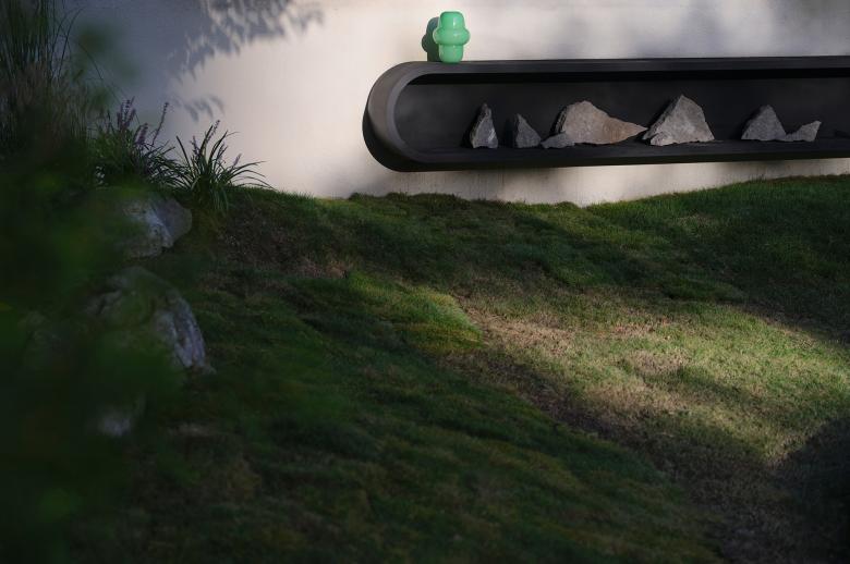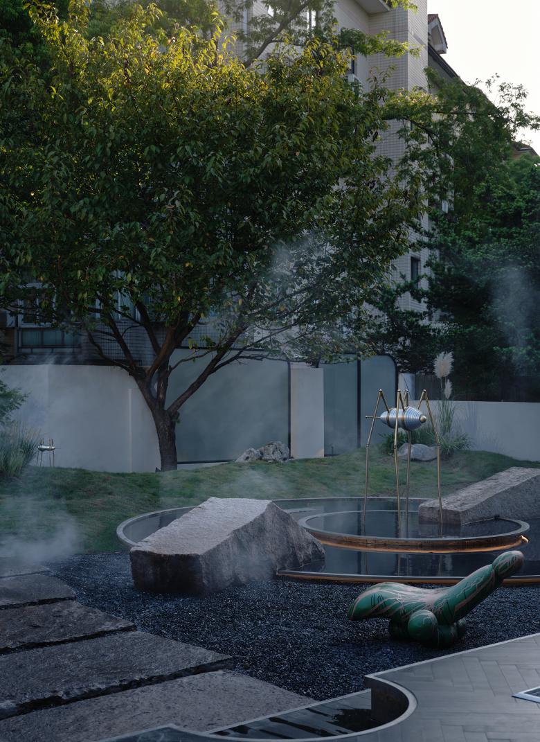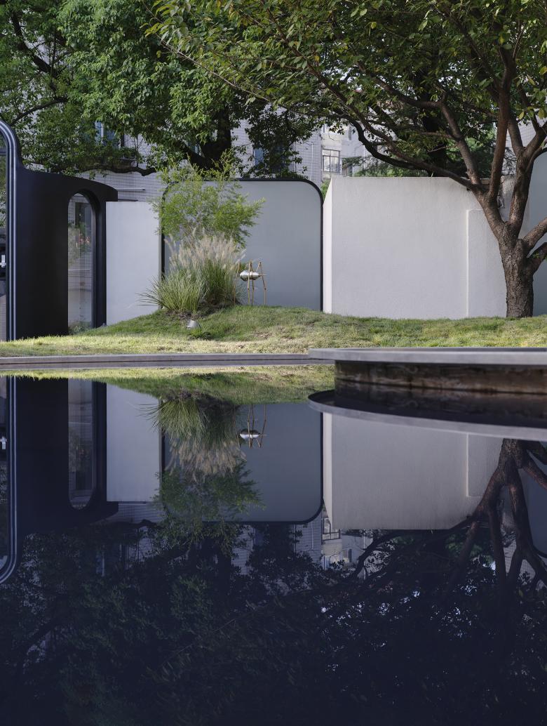 The black gravel pavement invites visitors to step into the secluded courtyard, which is rich in nature, sunlight and water, and regulates the microclimate cycle consistently. The undulating topography reveals the wildness of nature, where plants flourish and birds chirp. Like a fertile foundation for inspiration and creativity, it accumulates infinite potential over time.