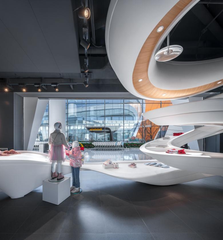 Therefore,in the most suitable position of the space,DUTS Design created a unique “Lucky Cloud” for Balabala,making it a visual connection for the users and the brand.Parents can learn about the brand here,and the children can be immersed in a Balabala‘s “Cloud Space”.
