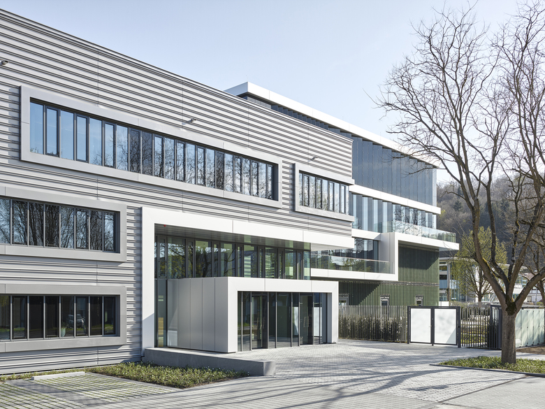 Erweiterung des Stammsitzes der ERBE Elektromedizin GmbH um eine Betriebsgastronomie, ein Schulungszentrum für Mitarbeitende und Kunden sowie neue Infrastrukturflächen für Verwaltung und Produktion. Dazu gehören ein repräsentatives Eingangsfoyer, Büroräume, Labore, die Räume der Geschäftsleitung, eine Betriebsausstellung mit Lounge sowie Umkleidebereiche für die Mitarbeitenden der Produktion. Der Gesamtkomplex wird gestalterisch als Gebäudecluster begriffen. Es handelt sich um eine Verschränkung von unterschiedlichen Kuben, die jeweils eine andere Fassadenidentität besitzen. Der Neubau stellt funktional den Kopf der gesamten Anlage dar und soll als Abbild eines technischen Unikates die Wiedererkennbarkeit von Bauherr und seinem elektromedizinischen Produkt sein. Er erhält seine Gliederung durch eine Schichtung, in der die einzelnen Funktionen ablesbar sind. Diese Funktionen zeigen sich an der Fassadenoberfläche unterschiedlich profiliert und stellen mit dieser Gliederung einen Übergang zu den angrenzenden Bauteilen her. Durch die funktionale Anbindung des Neubaus an den Bestand wurde die energetische Sanierung der Bestandsgebäudehüllen (Verwaltungsbau und Fertigungshalle) erforderlich.