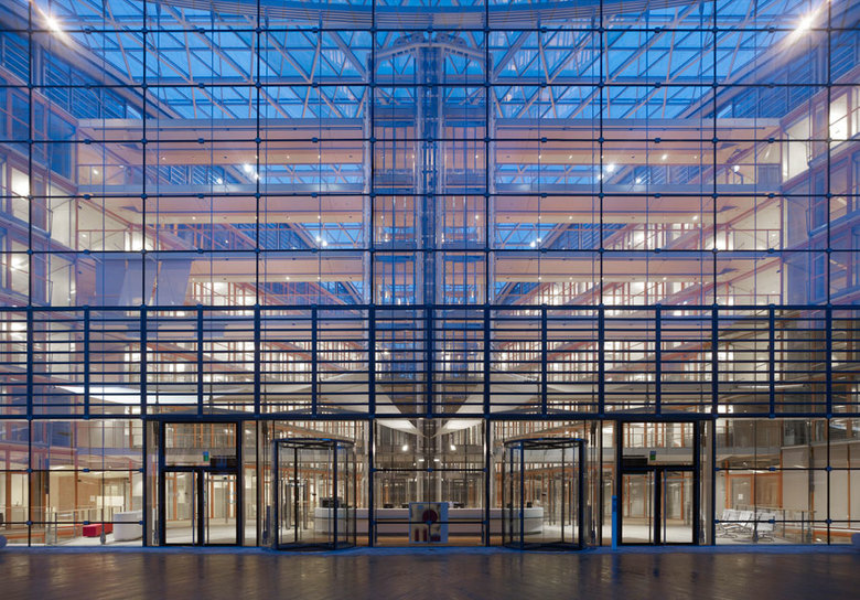 Das neue Verwaltungsgebäude der Europäischen Investitionsbank (EIB) mit seinem markanten, 13 000 m2 grossen Glasdach erweitert die bestehenden Bauwerke auf dem Kirchbergplateau in Luxemburg. Zwischen dem Boulevard Konrad Adenauer und dem Val des Bons Malades gelegen, bietet der Erweiterungsbau 72 500 m2 Bürofläche für bis zu 900 Mitarbeiter und zentrale Einrichtungen für den gesamten Campus. Das röhrenförmige Glasdach überspannt das gesamte 170 m lange und 50 m breite Gebäude. Es bietet ein Maximum an Tageslicht und Transparenz. Der zickzackförmige Gebäudegrundriss unterstützt die gleichberechtigte Anordnung der Büroräume und trägt zur Förderung der Kommunikation bei.