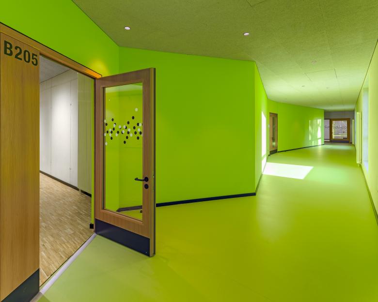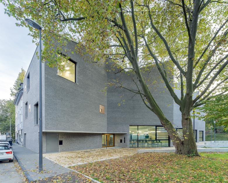 In Köln, an den Rändern eines innerstädtischen Parks, hat sich ein Zusammenbund verschiedenster Bildungseinrichtungen, die „Bildungslandschaft Altstadt Nord“ (BAN) etabliert. Neben den Bestandsinstitutionen Gymnasium und Abendgymnasium sowie Jugendbildungseinrichtungen, wurden fünf neue Bauten von gernot schulz : architektur realisiert: als letztes Puzzleteil ist nun das Mensa- und Ateliergebäude in Nutzung gegangen. Es steht als sog. Verbundgebäude wie auch das Studienhaus sämtlichen Institutionen der BAN zur Verfügung. Das „Mensa- und Ateliergebäude“ (MAG) greift die Materialität und polygonale Formensprache der Gebäude vis-à-vis des Parks auf. Durch sich wiederholende Nischen und Raumaufteilungen erhalten die Gemeinschaftsräume des MAG immer neue Lern-, Aufenthalts und Identifikationsräume. Die inzwischen acht beteiligten Institutionen der Bildungslandschaft ermöglichen aufgrund der hohen Nutzerzahl in der Mensa die Einrichtung einer sogenannte Frischküche. Ein Team von Köchen und Köchinnen kann bis zu 1000 Essen am Tag, zeitlich gestaffelt vom Kindergarten bis zum Abendgymnasium, frisch kochen und ausgeben. Durch die fächerartige Architektur werden Raumkompartimente ausgebildet die den typischen anonymen Großraum vermeiden und zudem bei Bedarf das Trennen verschiedener Nutzergruppen möglich macht. Ein durchdachtes Ausgabesystem ermöglicht eine schnelle Austeilung und Abgabe gebrauchter Tabletts. Im ersten Obergeschoss befindet sich das Selbstlernzentrum der Lernenden und das Schülercafé unter der Leitung des Caterers. Der Raum ist bewußt offen gestaltet und nur mit losem Mobiliar bestückt. Er steht allen Beteiligten der verschiedenen Einrichtungen ob Lehrer, Eltern oder Kindern zur Verfügung. Im Dachgeschoss erweitern die Atelierräume das Bildungsangebot der BAN. Es gibt je ein Atelier für Tanz, Schauspiel, Handarbeit und Kochen. Dabei sind auch hier die Räume weitestgehend von Möblierung frei gehalten worden, um Raum für Ideen und Entfaltung zu geben. Das Tanzatelier erhielt dabei einen Holzschwingboden, Spiegel und Ballettstange, der Schauspielraum eine kleine