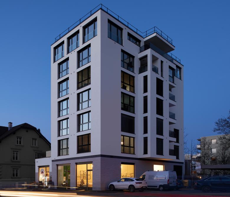 Das Gebäude erreicht die höchste Energie-Effizienzklasse A des Gebäudeenergieausweises der Kantone – GEAK. Wegen der Lage an der stark befahrenen Zürcherstrasse sind sehr gute Schallschutzfenster und kontrollierte Lüftungen in allen Wohnungen eingebaut. Trotzdem konnte das Gebäude durch ein rigoroses Kostenmanagement mit einem m3-Preis von CHF 675.- abgerechnet werden.