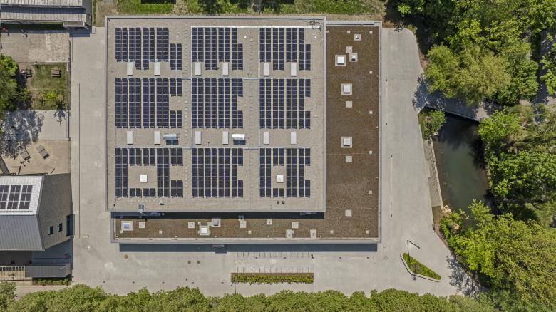 Im Fassadenbereich (Südfassade) ist eine Verdunkelungsmöglichkeit vorgesehen, sodass verschiedene Lichtsituationen geschaffen werden können. Dadurch ist die Halle für Veranstaltungen unterschiedlichster Art nutzbar. Alle anderen Seiten haben keinen Tageslichteinfall (Ostseite) bzw. regulierbares Licht durch innere Abdunkelungsmöglichkeiten. Die Konstruktion, insbesondere das Hallentragwerk, lässt einen hohen Grad an Vorfertigung zu und ermöglicht dadurch eine kurze Bauzeit. Technikflächen liegen im Untergeschoss an zentraler Stelle unter der Tribüne, sodass keine zusätzlichen Dachaufbauten dafür notwendig werden.