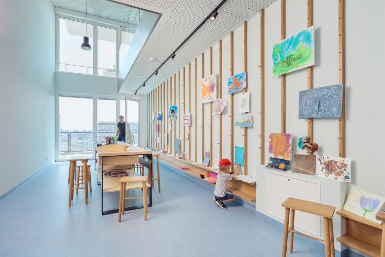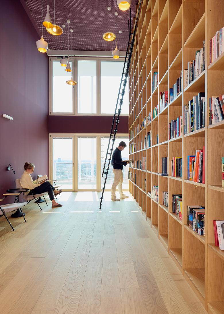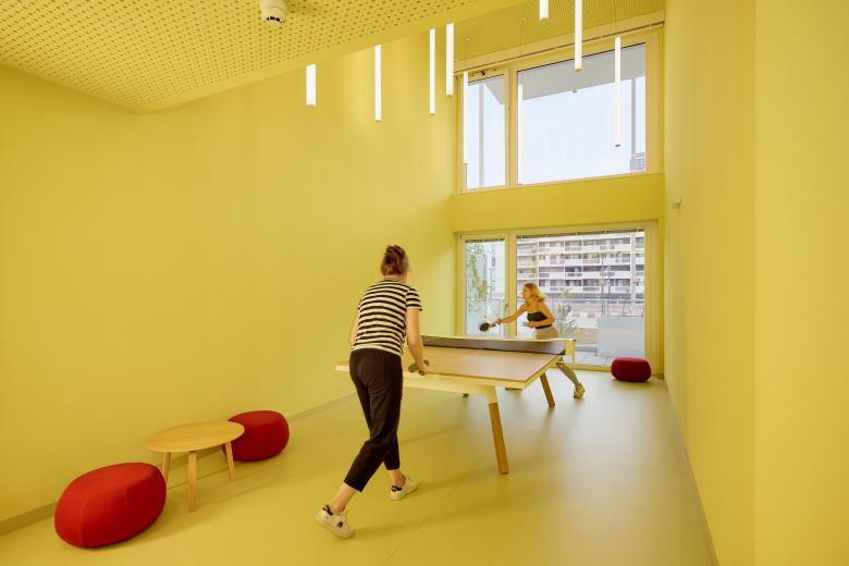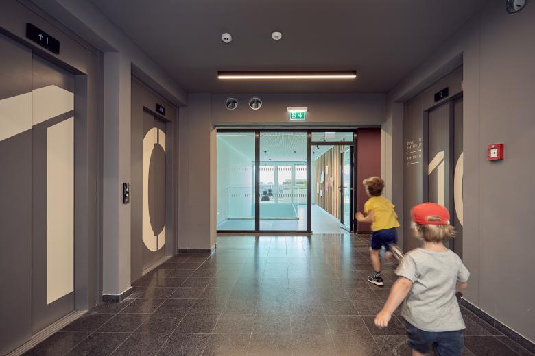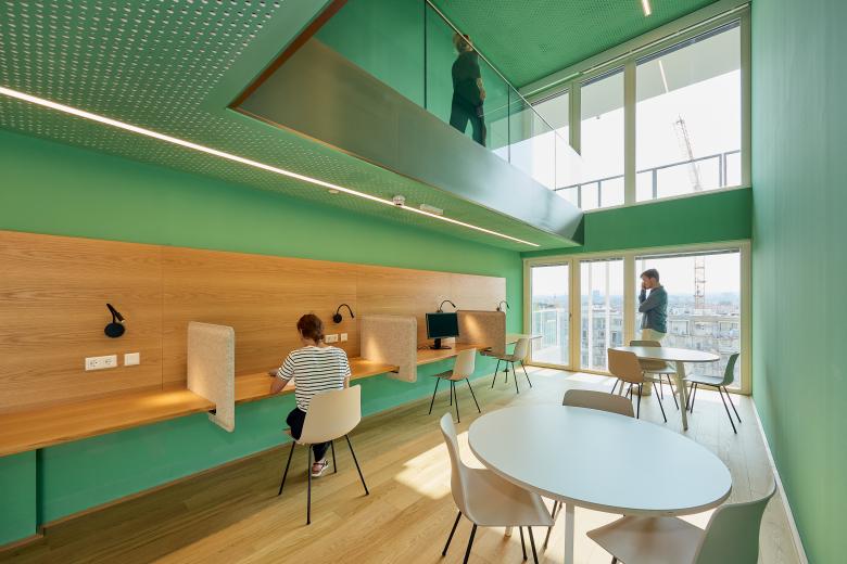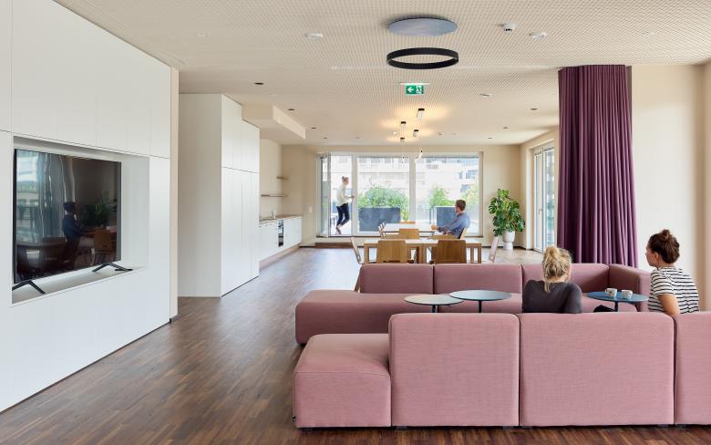 Taborama Wohnhochhaus mit farbvollen Gemeinschaftsräumen für alle Bewohner*innen