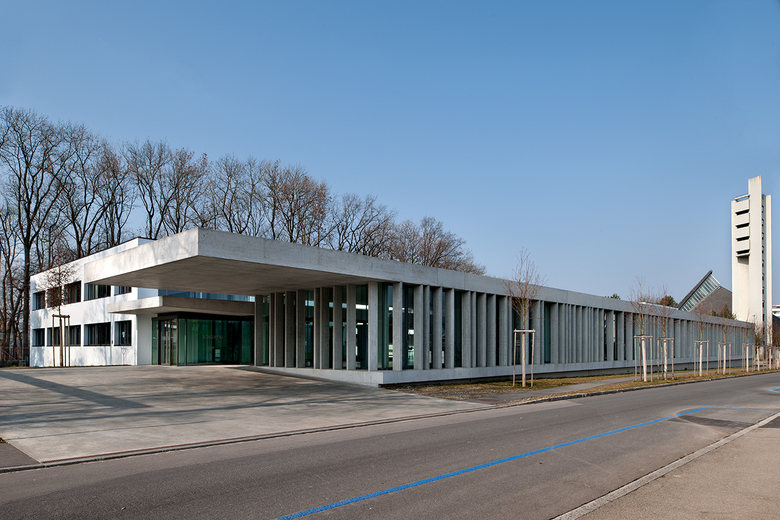 Bedarf bestand vor allem darin, mehr Fläche für die Schulräume zu gewinnen und diese attraktiver zu gestalten. Der bestehende Längsbau wurde abgerissen und durch einen pavillonähnlichen Neubau ersetzt, der die Strassenflucht klar nachzeichnet und einen reizvollen architektonischen Bezug zum Turm der Thomaskirche schafft. Um die Anbindung an die benachbarte Regelschule zu verbessern, wurde der Haupteingang nach Südosten verlegt. So entstanden eine gut lesbare Eingangssituation und ein neuer Aufenthaltsbereich, der dank des auskragenden Vordachs zugleich geschützte Wartezone ist.